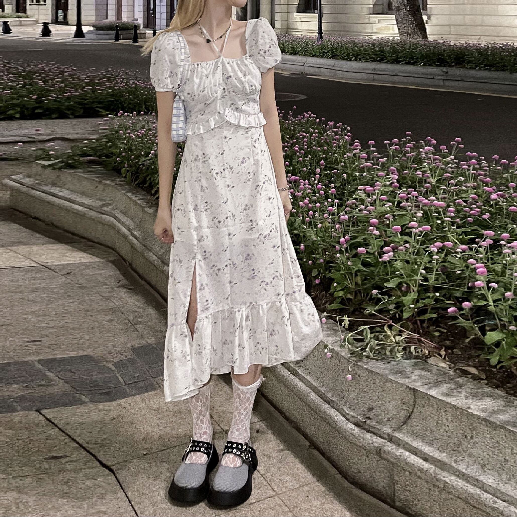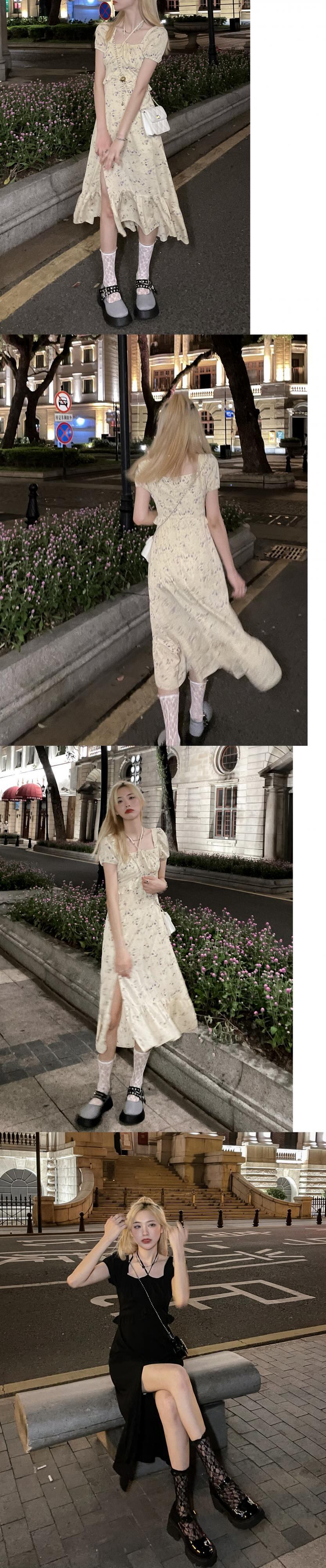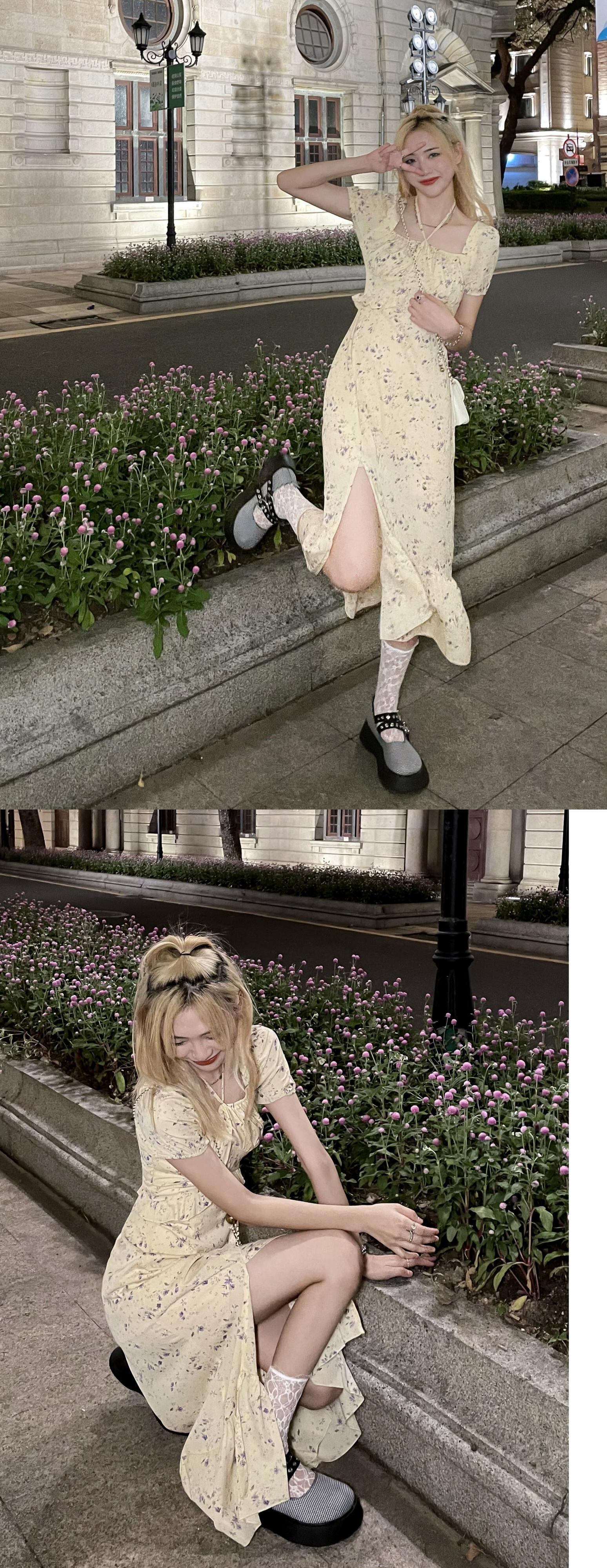カラーフローラルドレス サマーウェストロングスカート 大人ガーリー スウィート キュート カジュアル 夏物 花柄 スクウェア モンロー51974737791