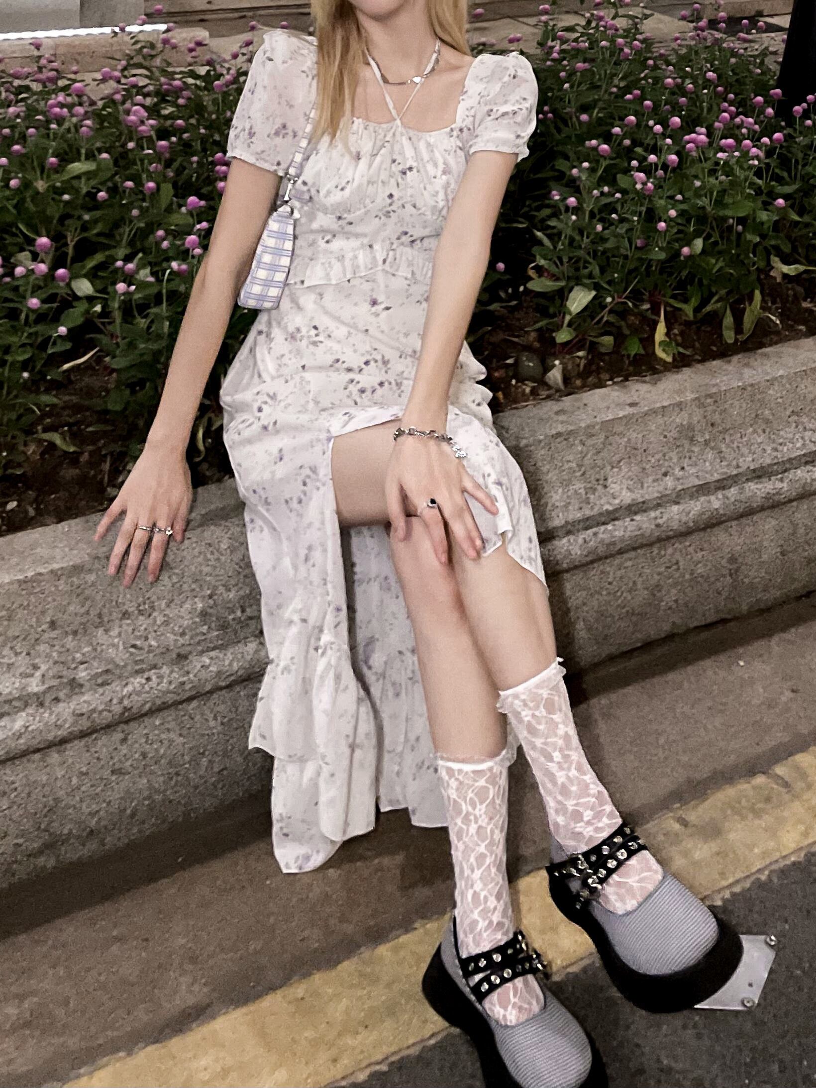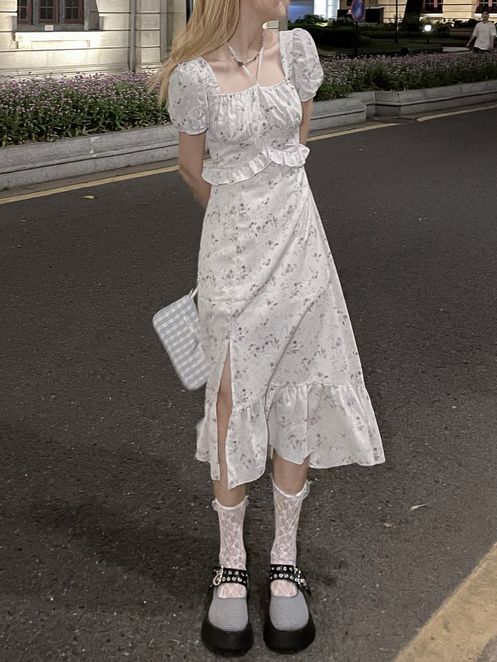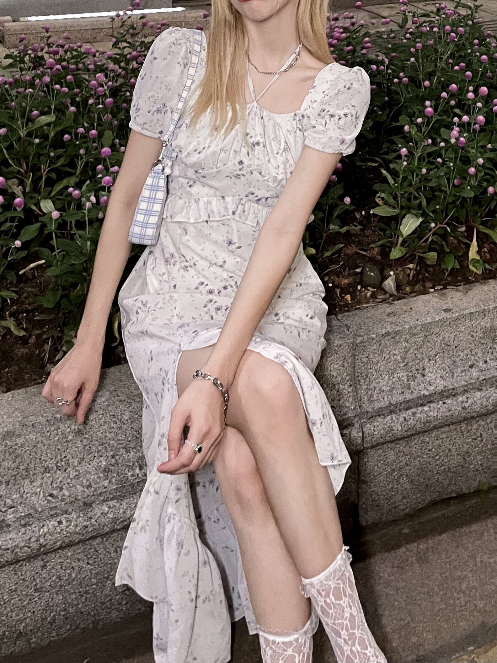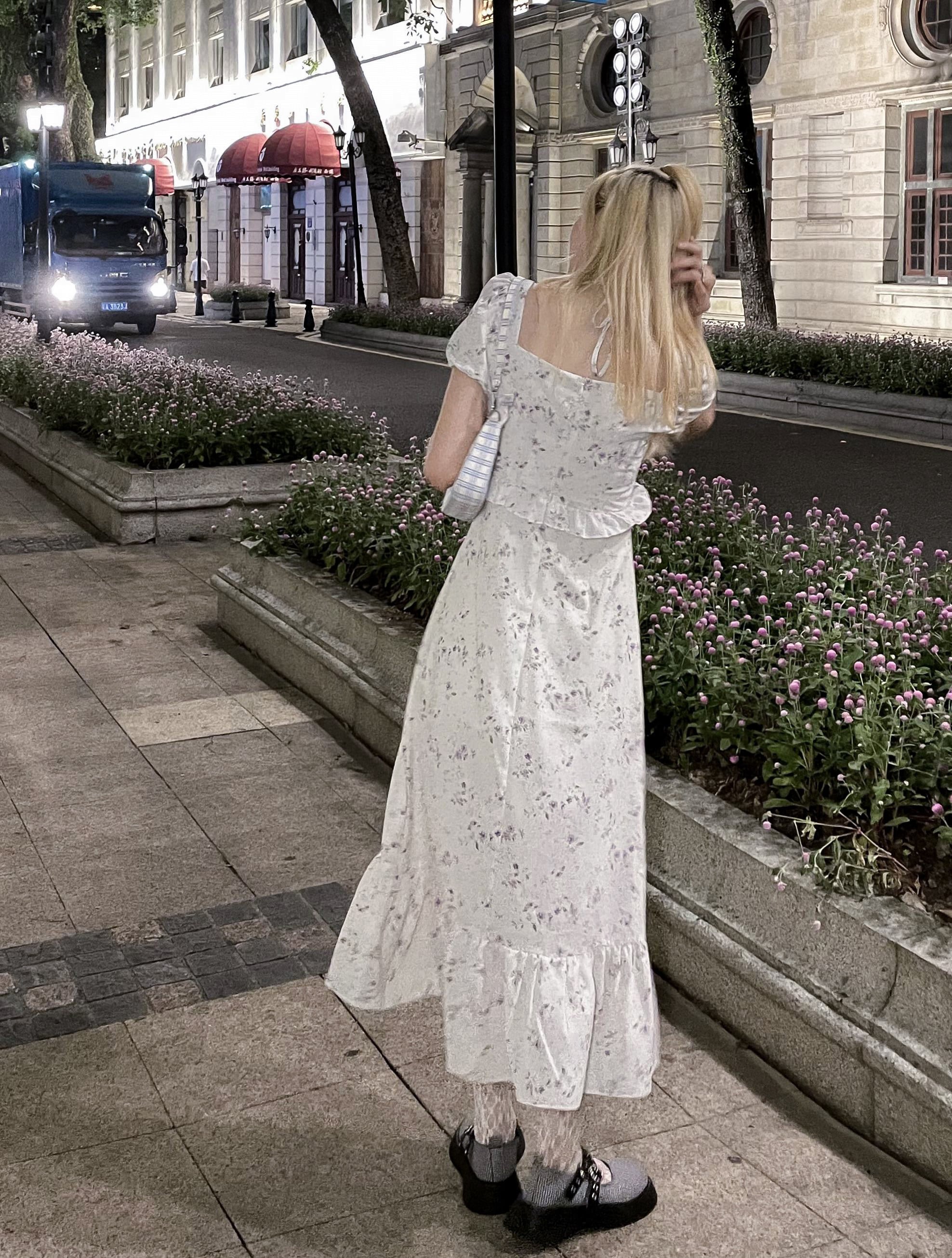 カラーフローラルドレス サマーウェストロングスカート 大人ガーリー スウィート キュート カジュアル 夏物 花柄 スクウェア モンロー51974737791
