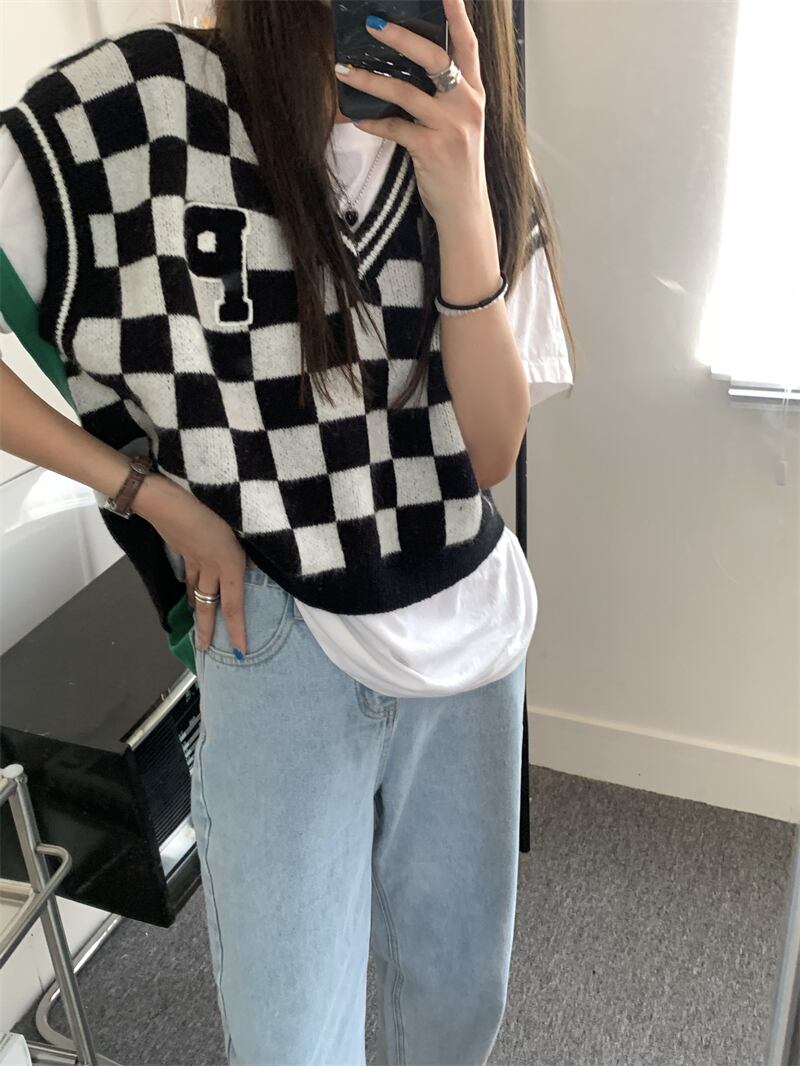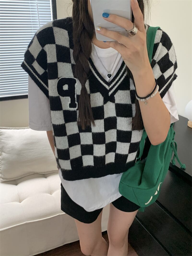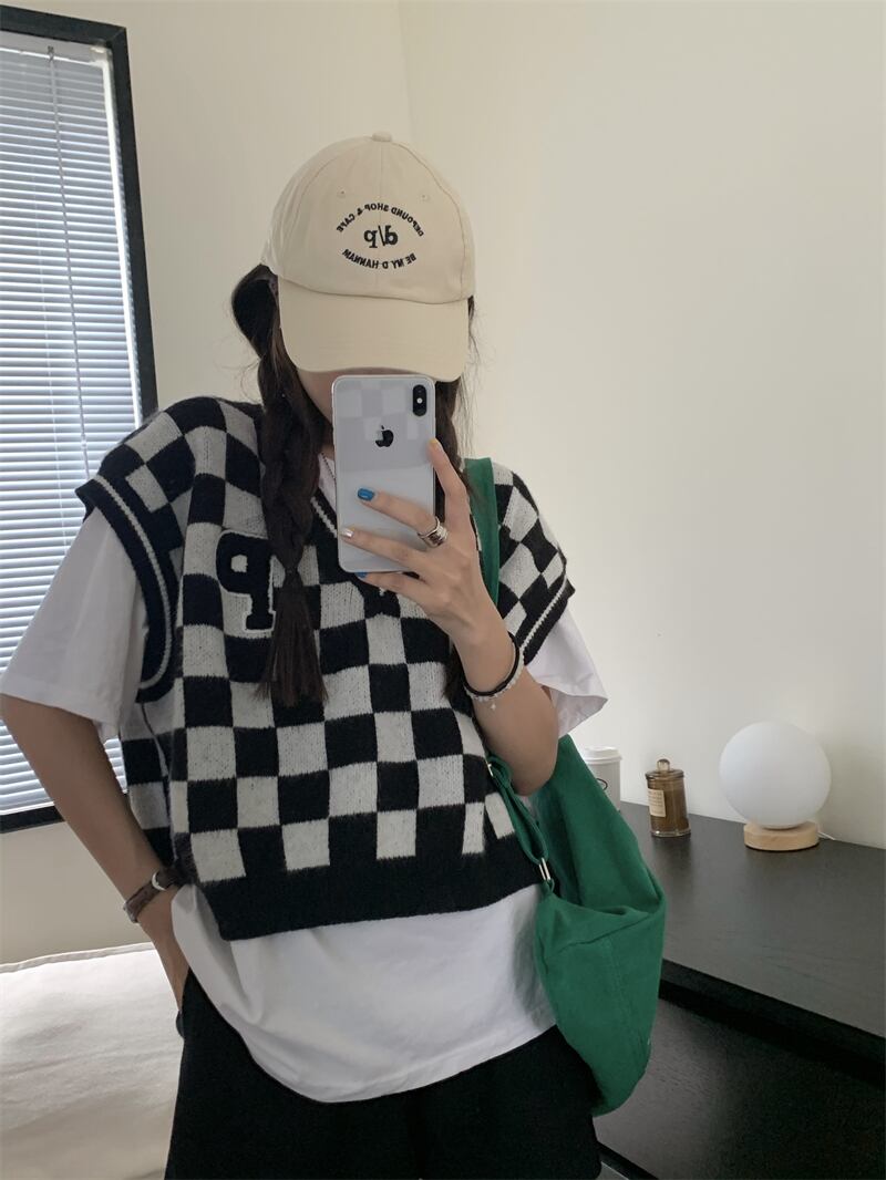 ブラックホワイトオータムルーズショートノースリーブトップス 半袖 ハーフスリーブ 秋物 モンロー5926210754