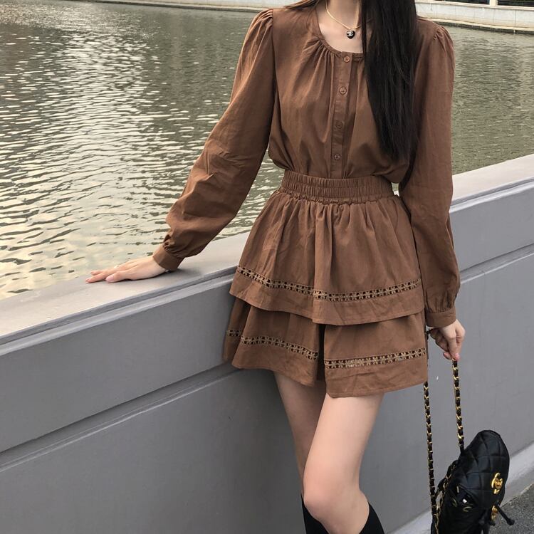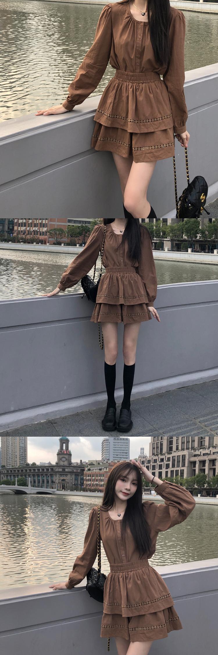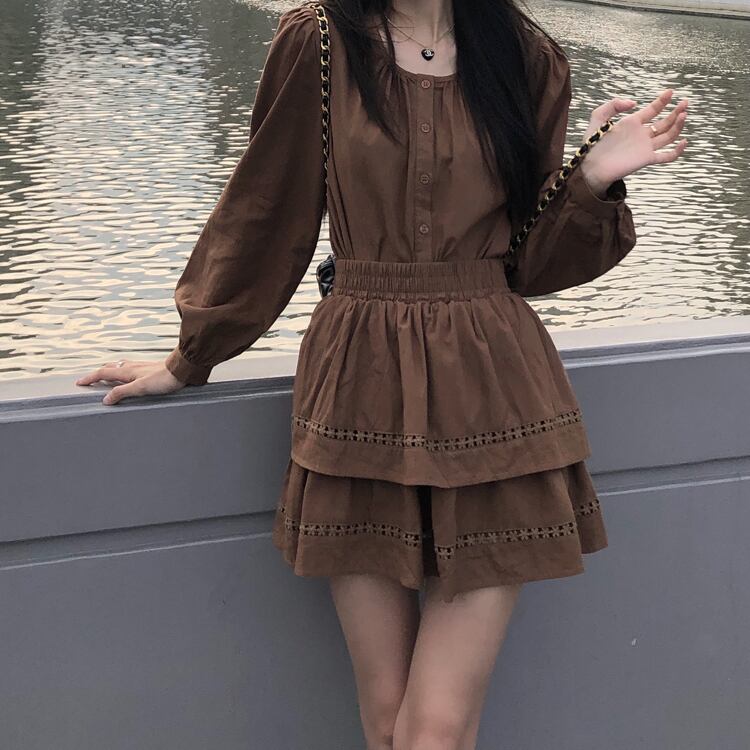 スカート オータムブラウンシャツ トップス ロング ストリート 秋物 モンロー15461994548