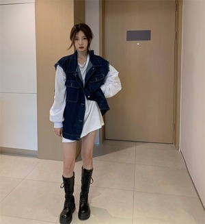 スタンダードオータムスタイルルーズ薄手ノースリーブトップス レトロ 秋物 モンロー9971279905