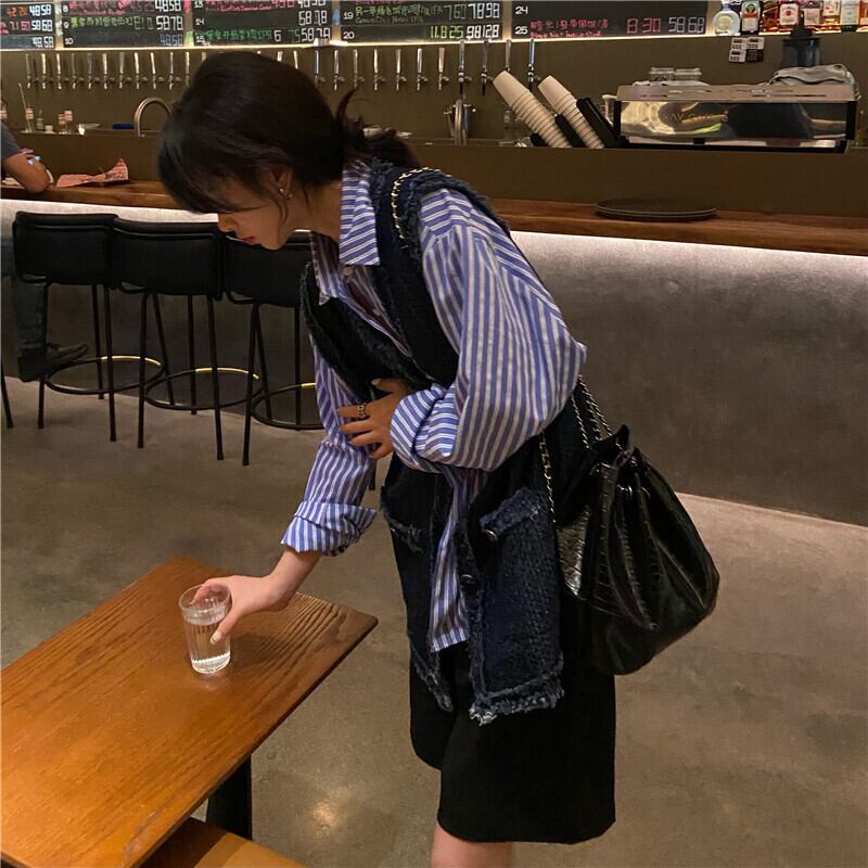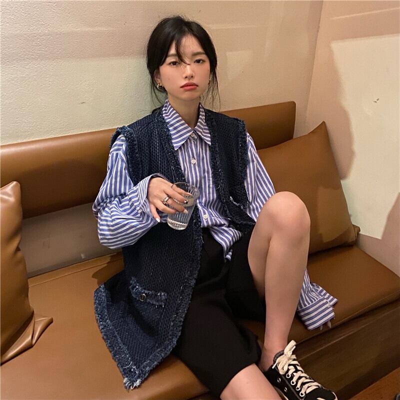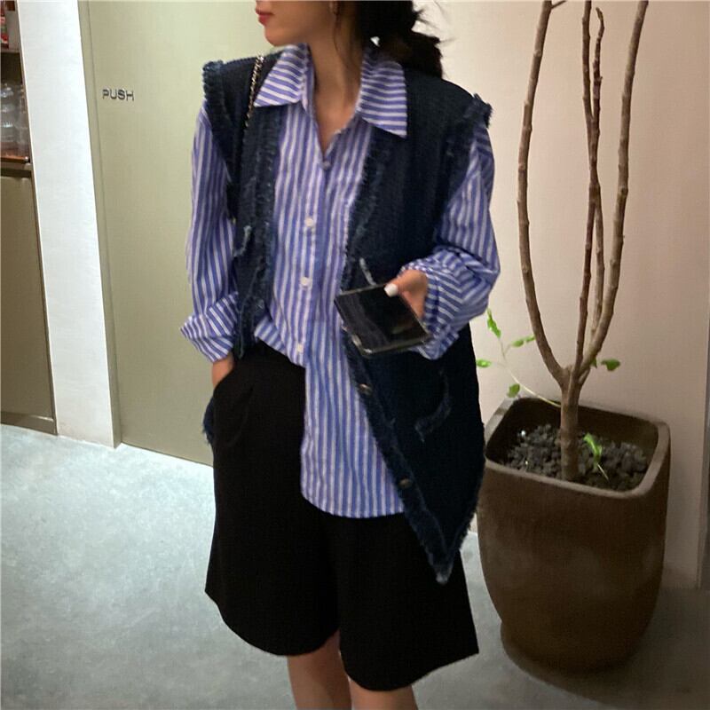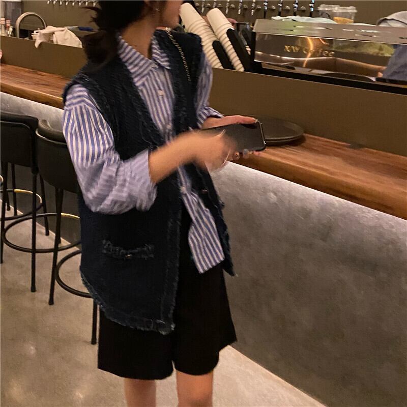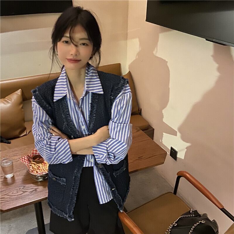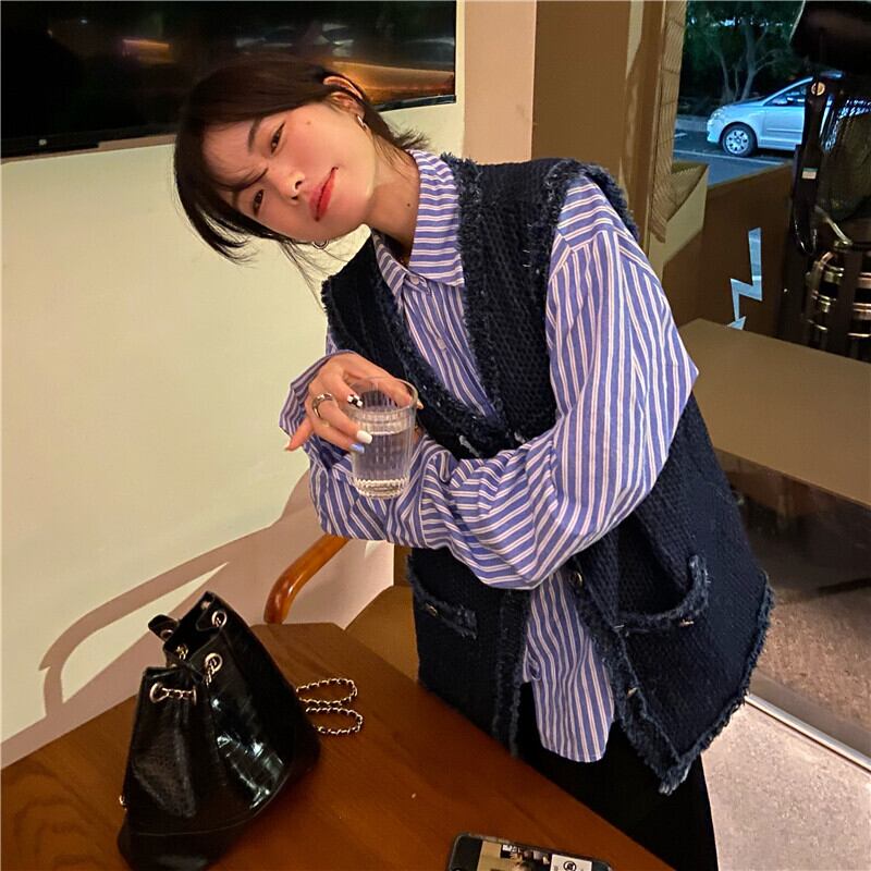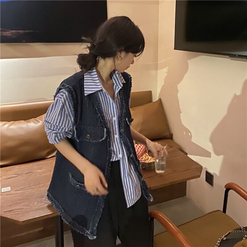スタンダードオータムルーズVネックノースリーブトップス レトロ 秋物 モンロー70784384382