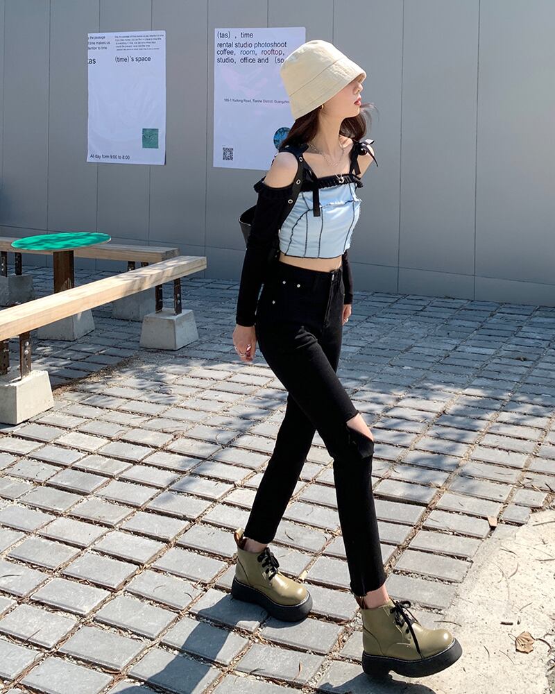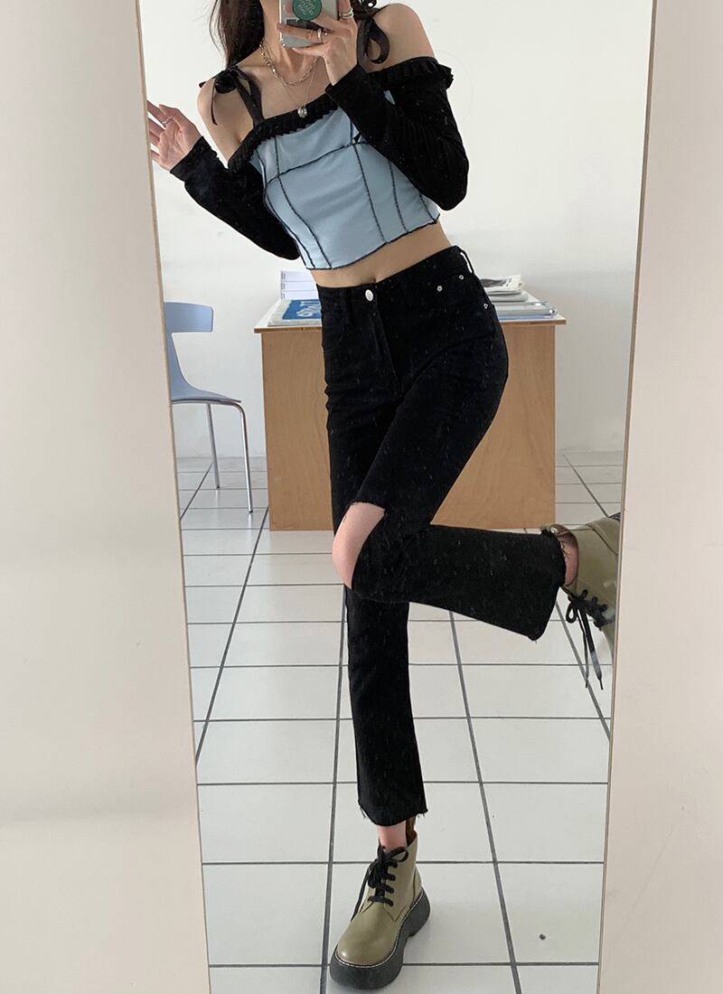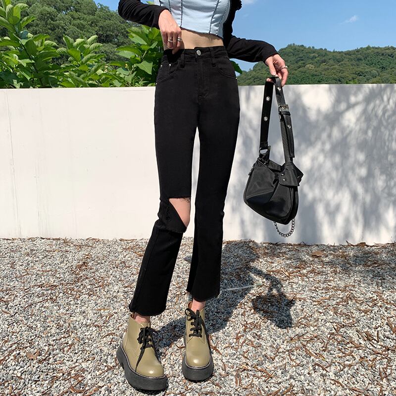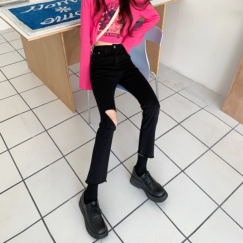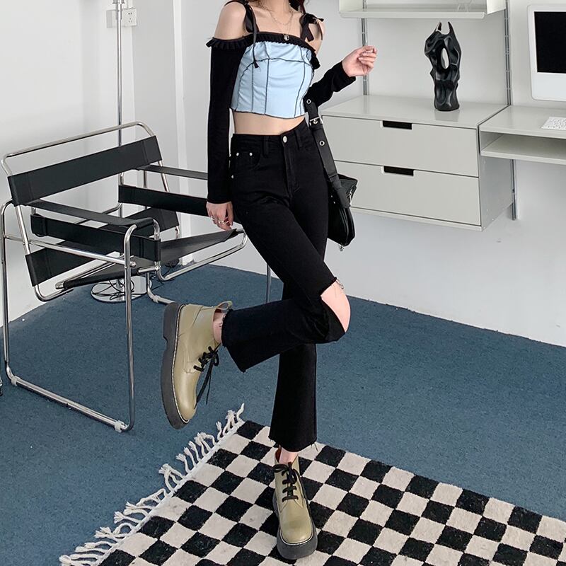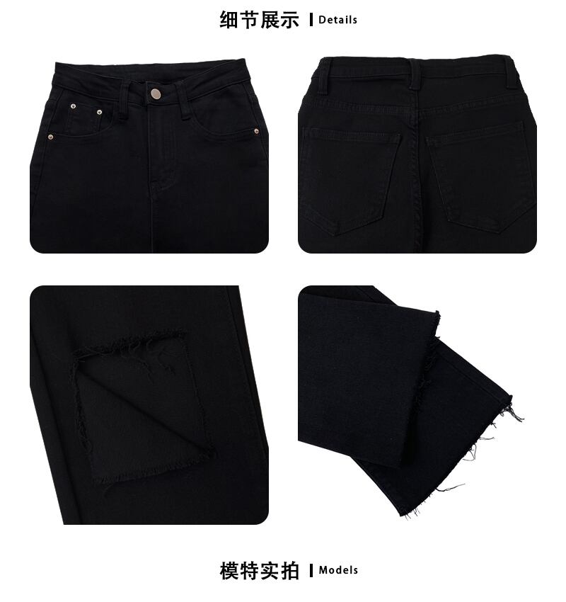 ハイウェストブラックジーンズ スプリングオータム薄手パンツ 春物 秋物 モンロー40654561291