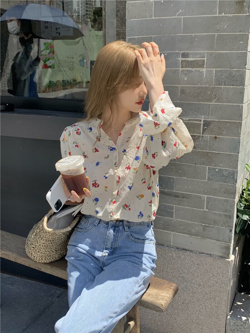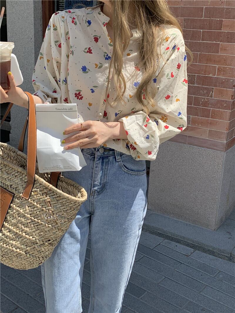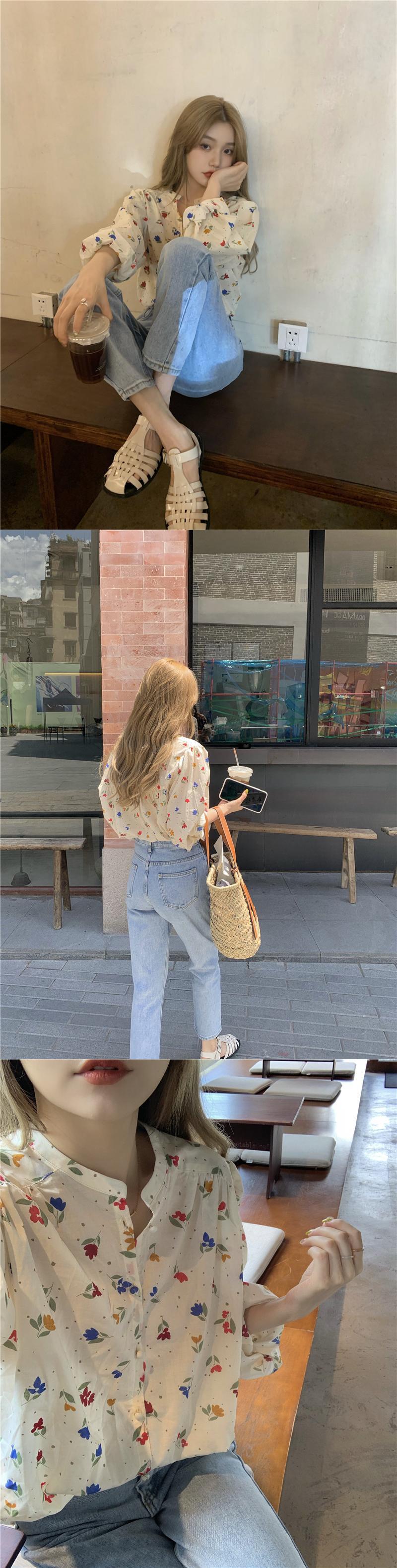 フローラルスタンドカラーカラー薄手シャツ ジャケット サマートップス ロング 夏物 花柄 モンロー10210606399