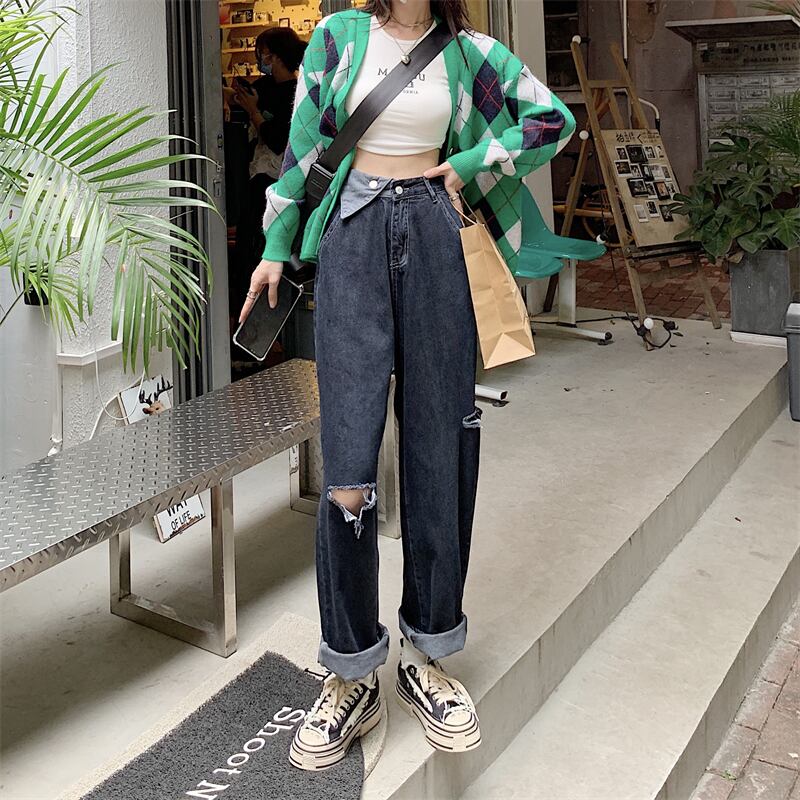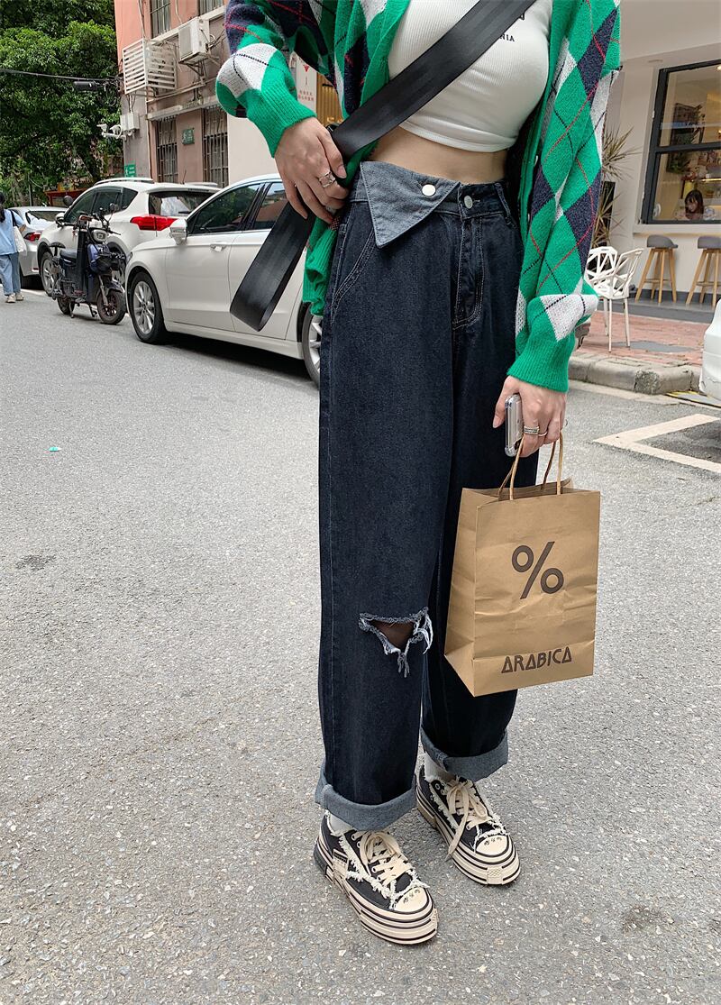 ダークハイウェストウェストパンツ スプリングオータム薄手ルーズ 春物 秋物 モンロー89586229553