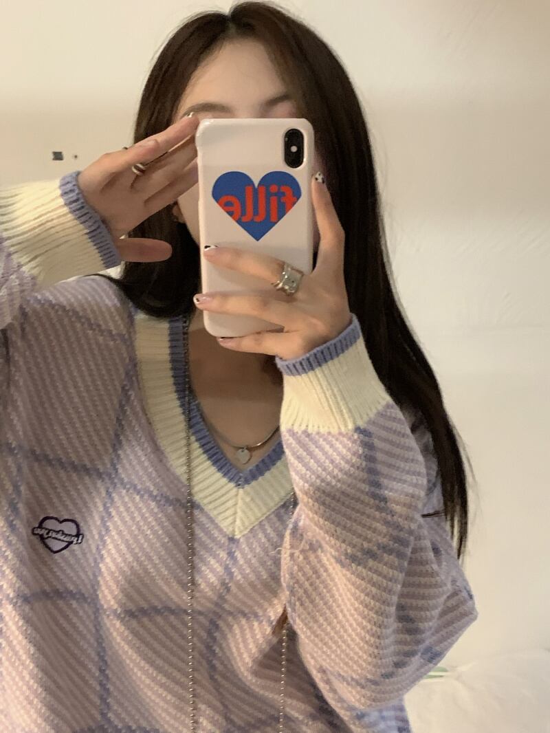 スタイルルーズVネックセーター コート オータムプルオーバー トップス ロング 秋物 モンロー53992846412