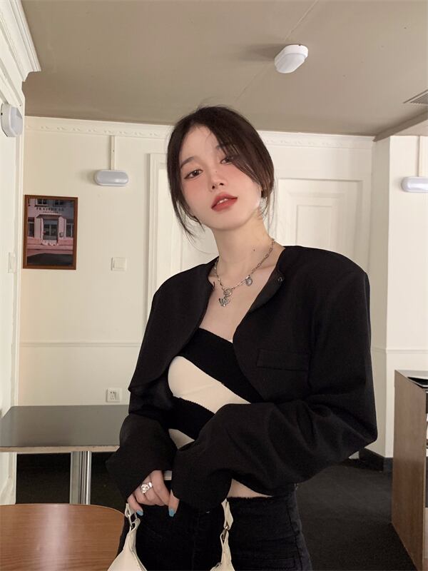 レッドスリムトップス オータムショートブラック 秋物 モンロー22028536671