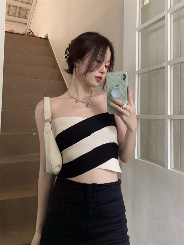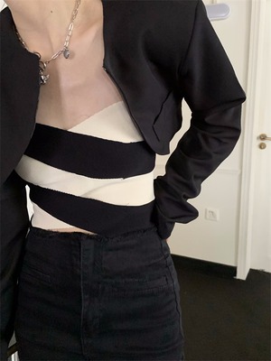 色:ストライプ胸ラップ,ブラックラップチェスト