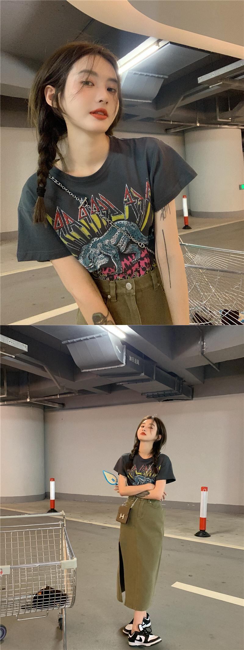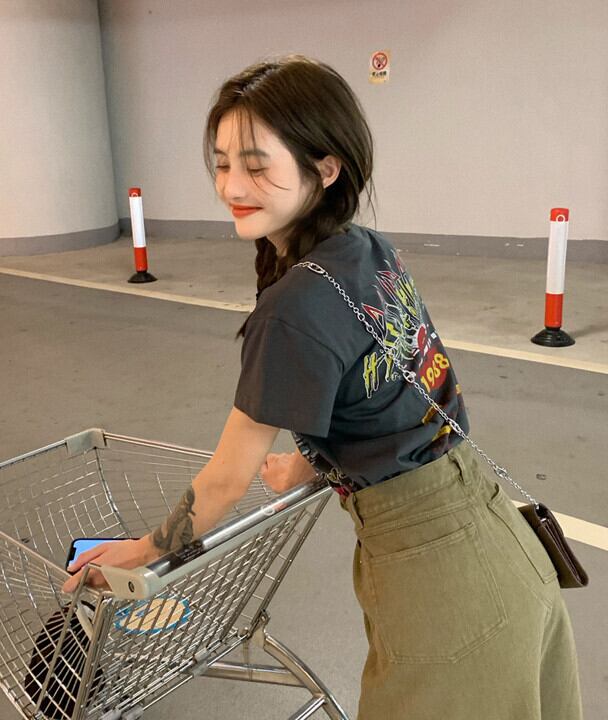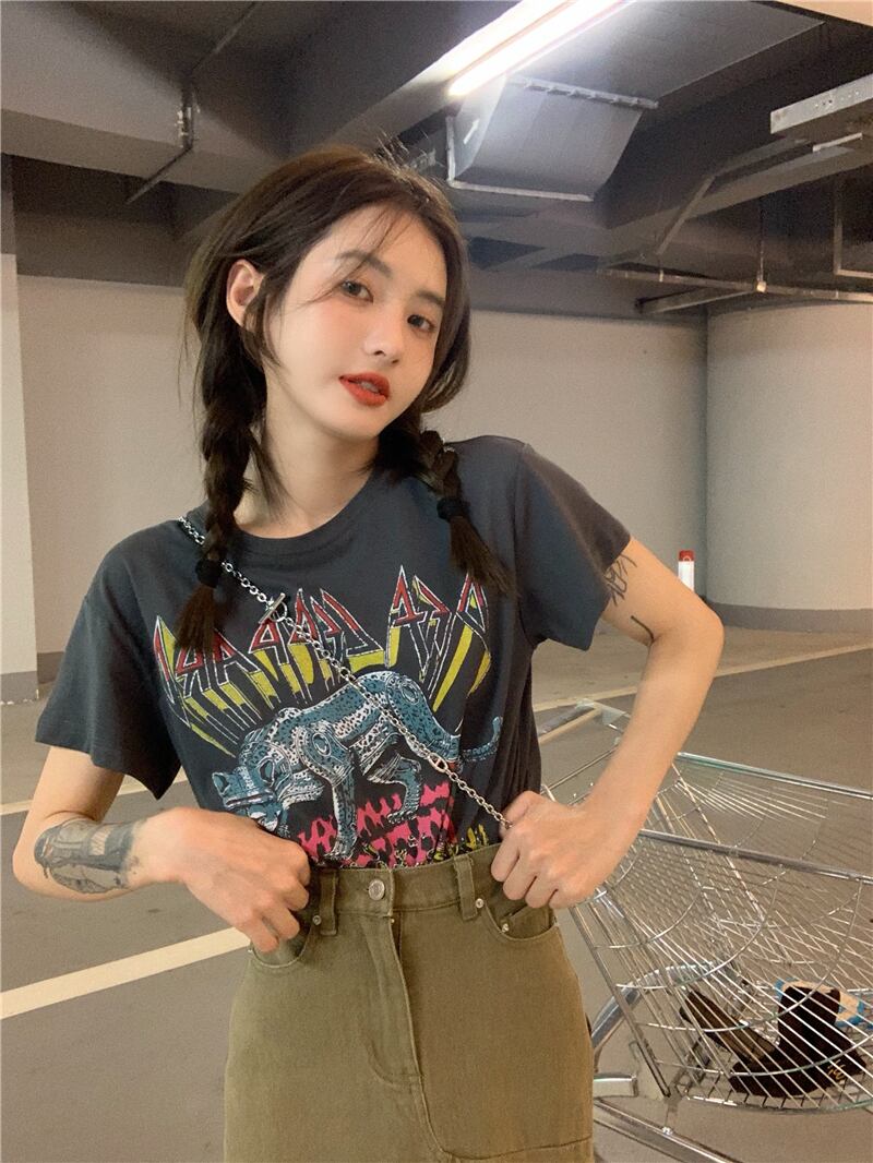 グレープリントスリムTシャツ 薄手サマー 夏物 モンロー60213312268