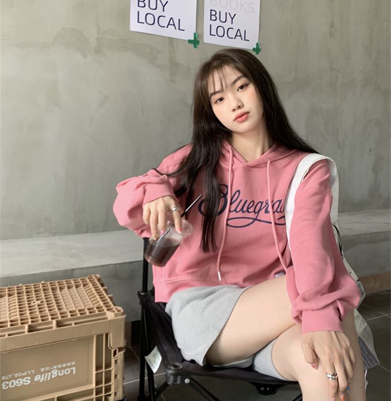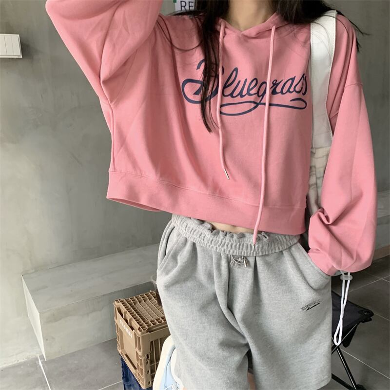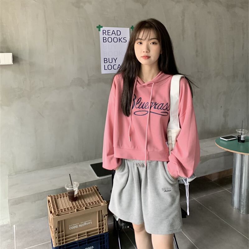 グレー薄手ショートセーター ジャケット オータムフードルーズプルオーバー トップス 秋物 モンロー10106213657