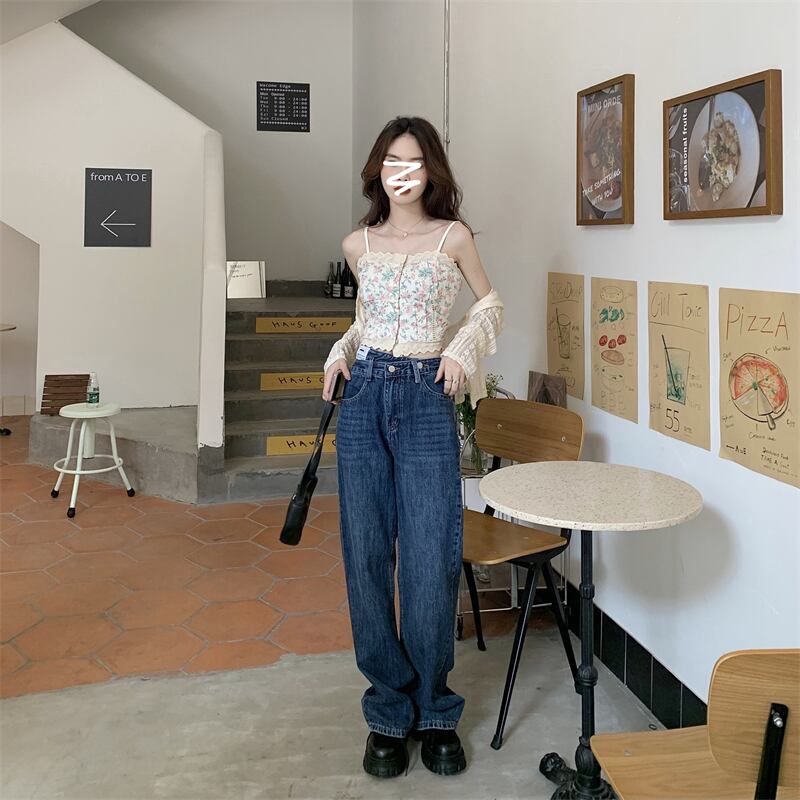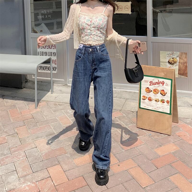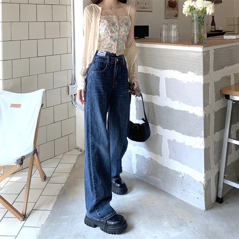 スタイルスタンダードブルーハイウェストウェストジーンズ スプリングオータム薄手ルーズワイドレッグパンツ レトロ 春物 秋物 ワイドパンツ モンロー53497936423