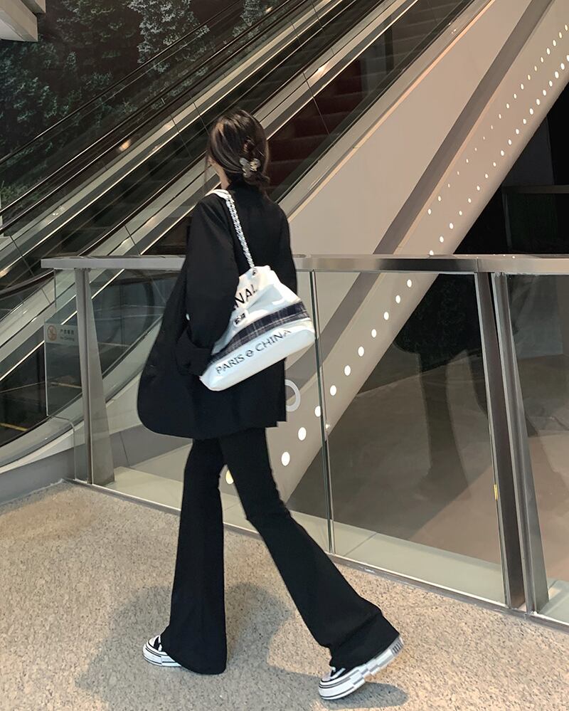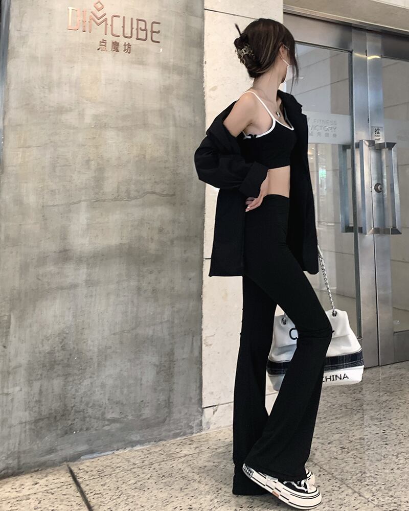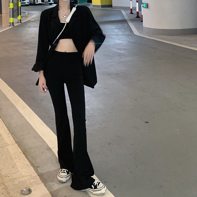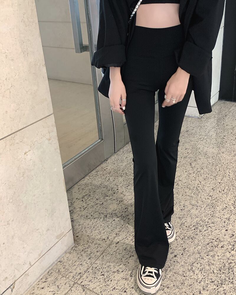 ブラックハイウェストカジュアルパンツ スプリングオータム薄手ルーズロングサマー レッド 春物 夏物 秋物 モンロー29881936755