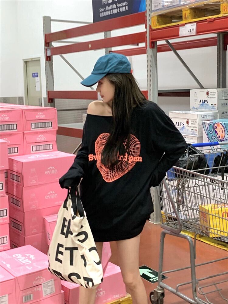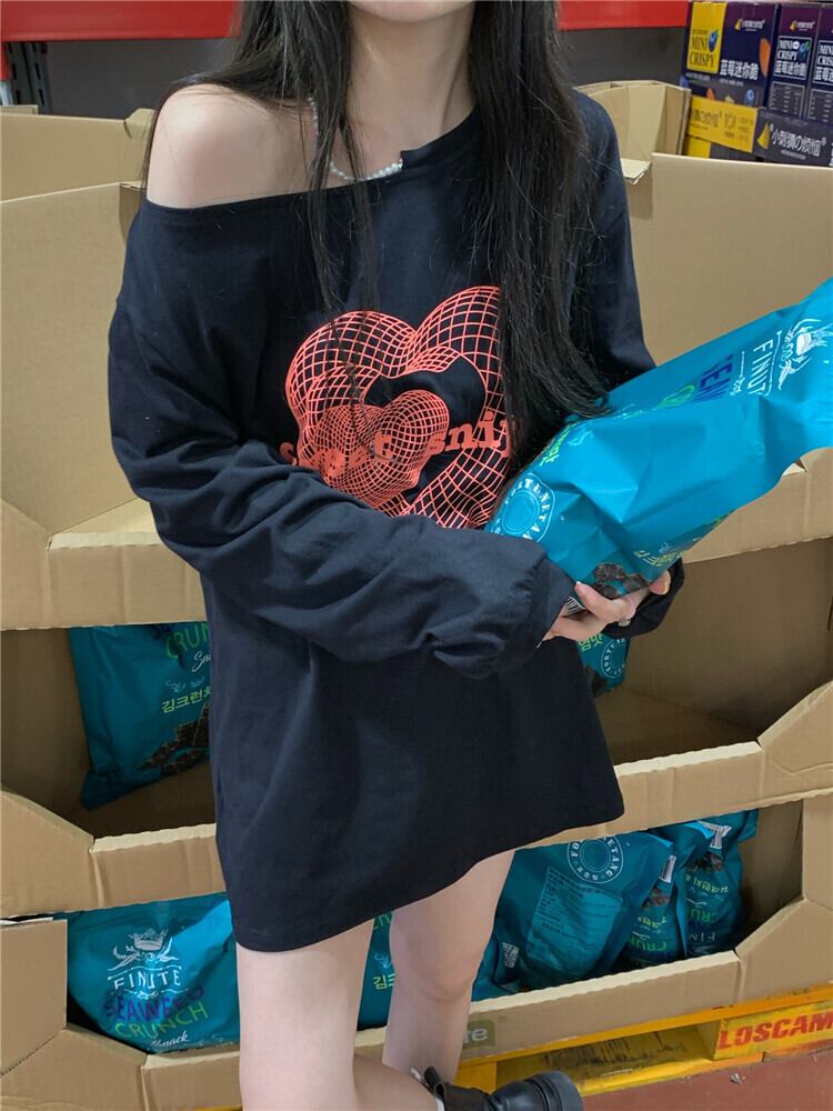 レッドルーズトップス サマープリントカジュアルTシャツ ロング 夏物 モンロー18214974332