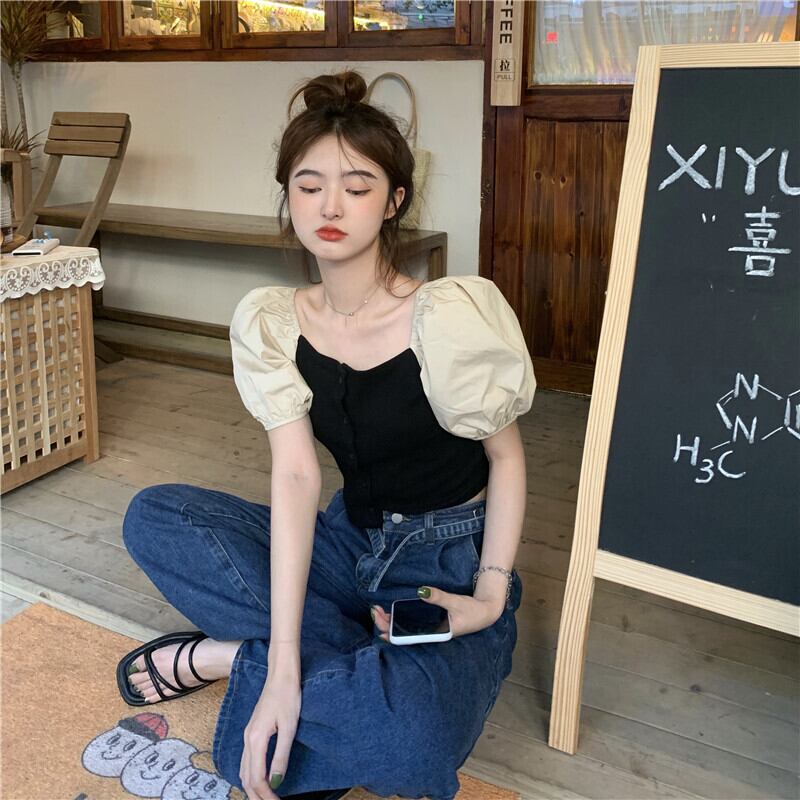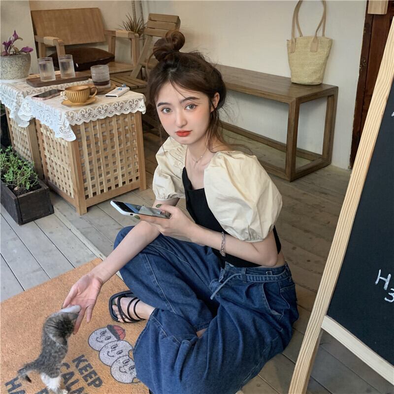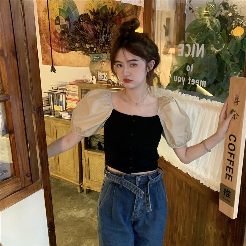 スタンダードカラーショートシャツ 薄手サマートップス レトロ 夏物 スクウェア モンロー7948636212