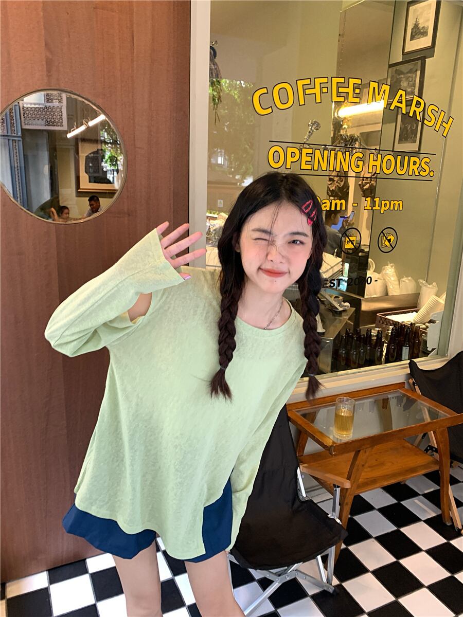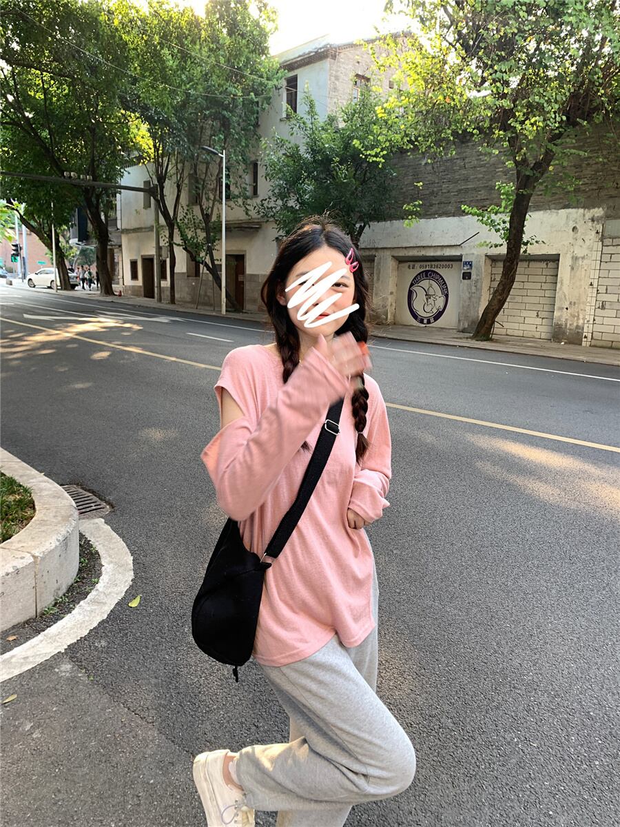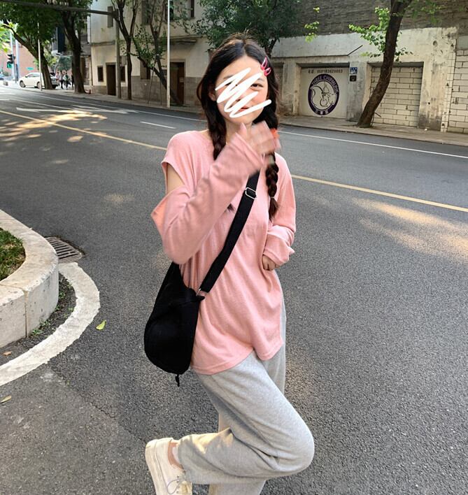 トップス サマールーズカジュアルラウンドネックTシャツ ロング 夏物 Oネック オフショルダー モンロー44968601096