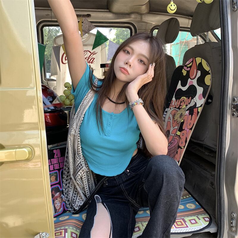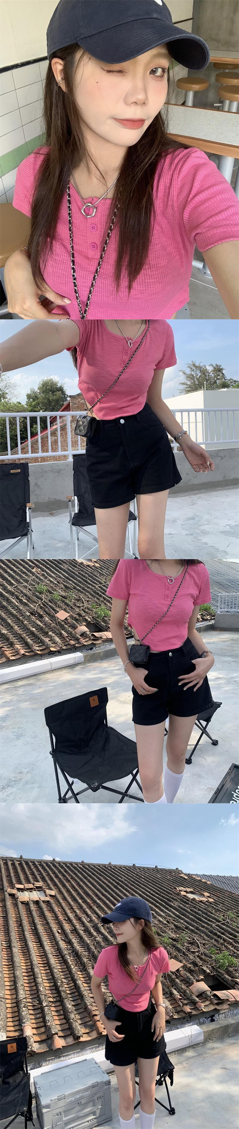 ショートスリムラウンドネックTシャツ サマーカジュアルトップス 夏物 Oネック モンロー48090015110