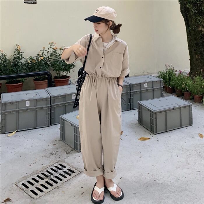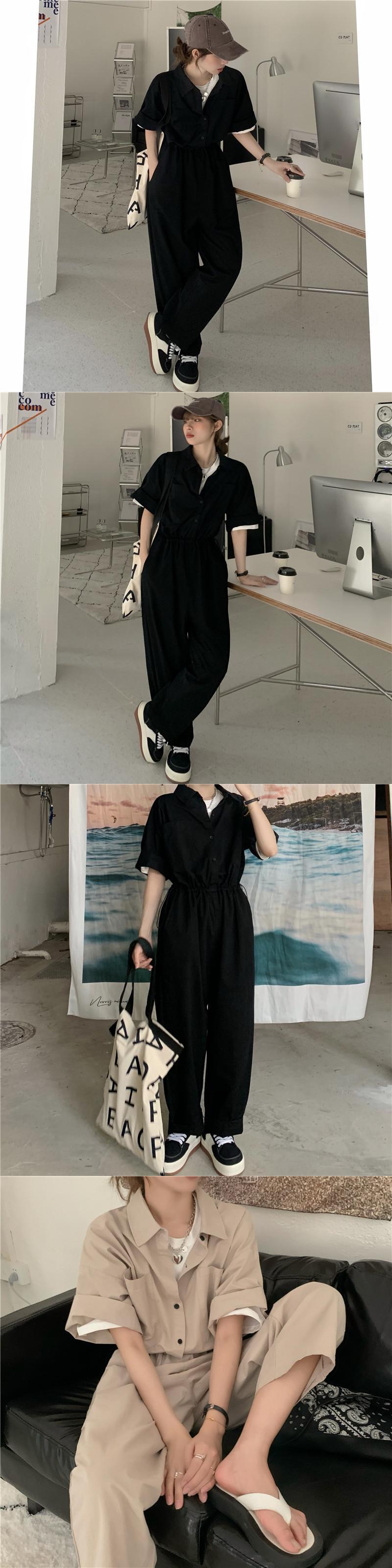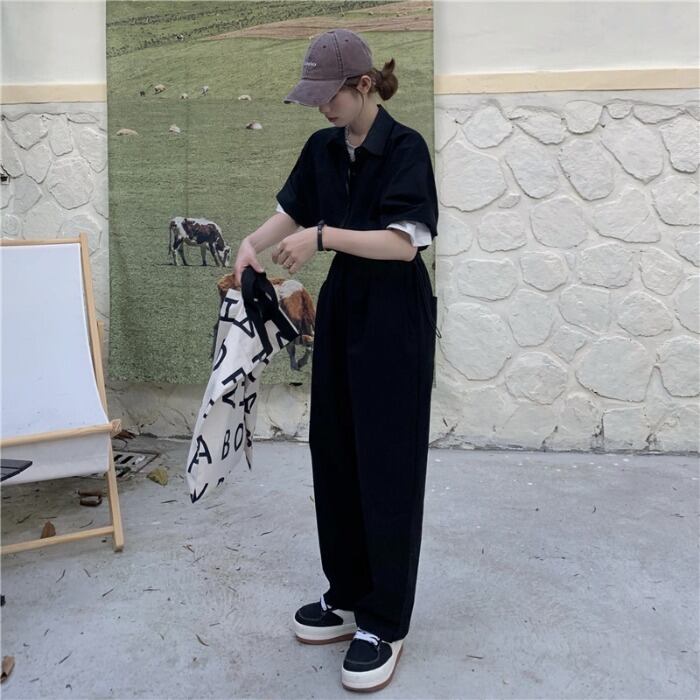 ブラックオーバーオール サマーカジュアルハイウェストウェスト薄手パンツ ジャンプスーツ オールインワン ルーズ 夏物 モンロー24844945457