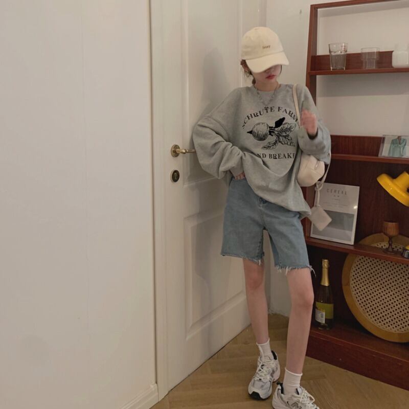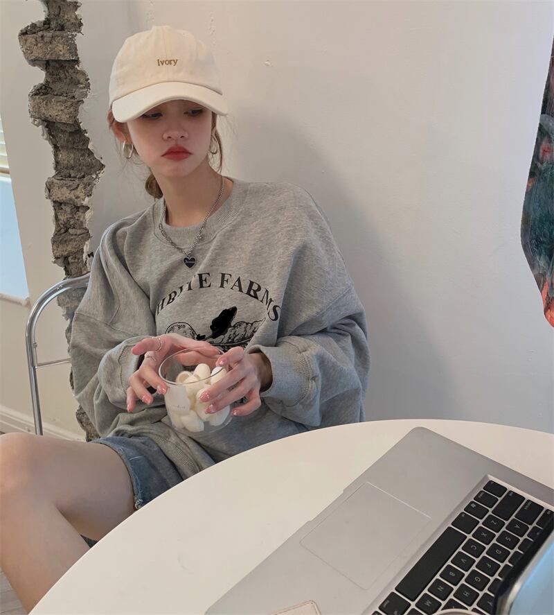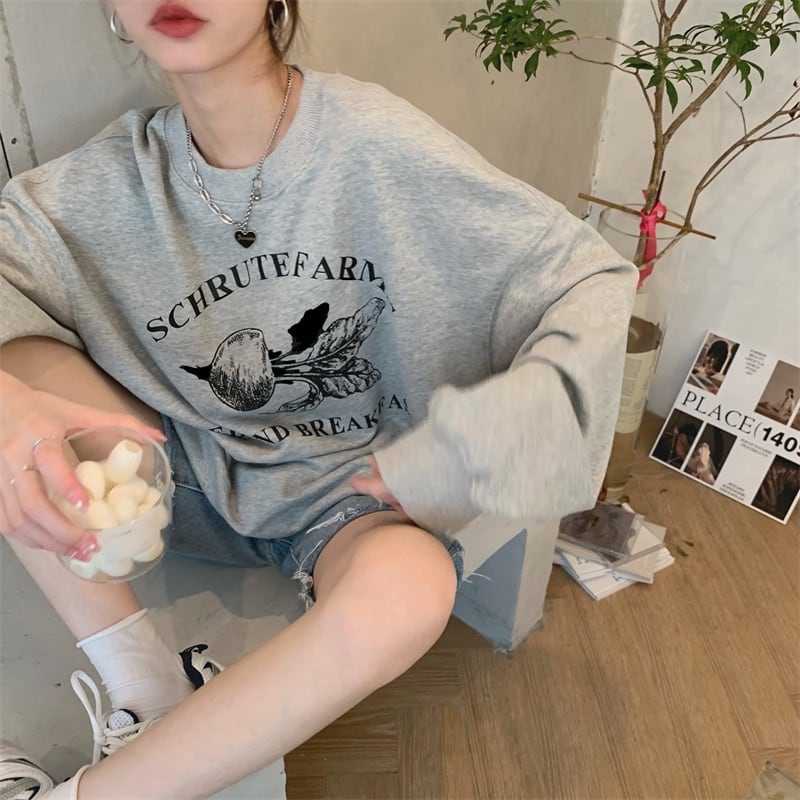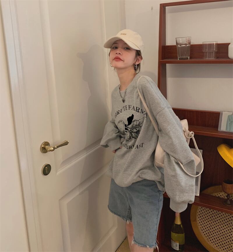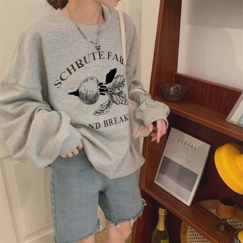 スタイルグレープリント柄ルーズセーター ジャケット スプリングオータム薄手トップス ロング 春物 秋物 モンロー40878175716