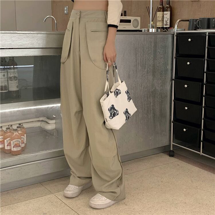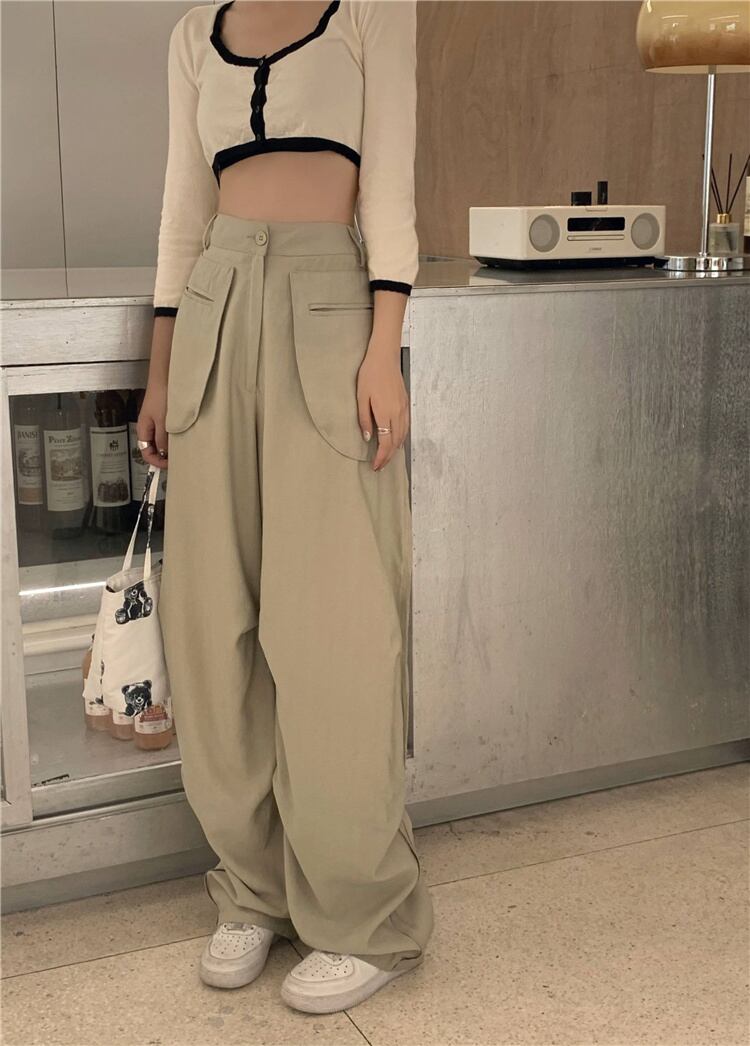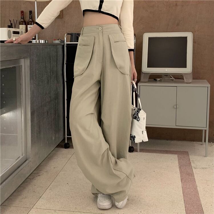 ハイウェストウェストカジュアルワイドレッグパンツ オータム薄手ルーズロングサマー 夏物 秋物 ワイドパンツ モンロー94231907842