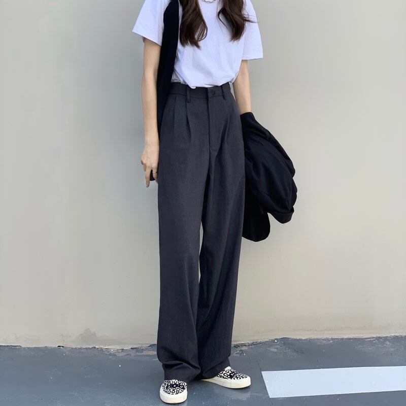 グレーハイウェストウェストカジュアルパンツ スプリングオータム薄手ルーズサマー 春物 夏物 秋物 モンロー12257477145