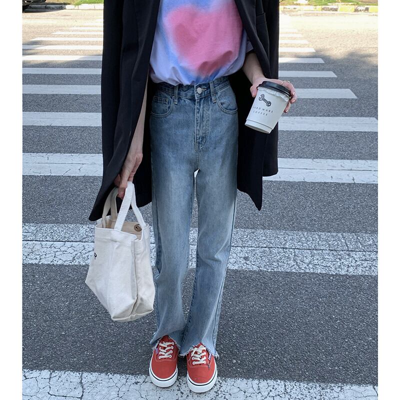 ブルースリットハイウェストウェストワイドレッグパンツ レディーススプリングオータム薄手ルーズ 春物 秋物 ワイドパンツ モンロー23620526754