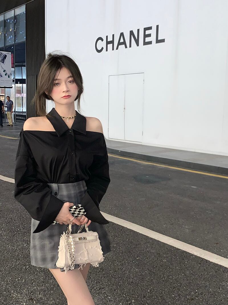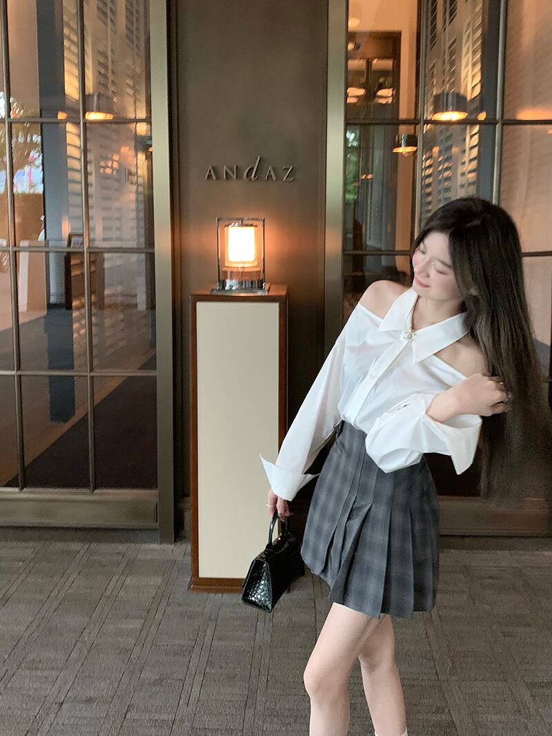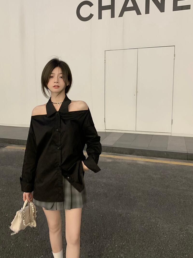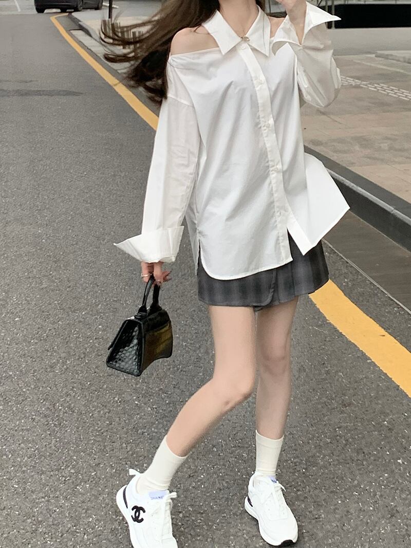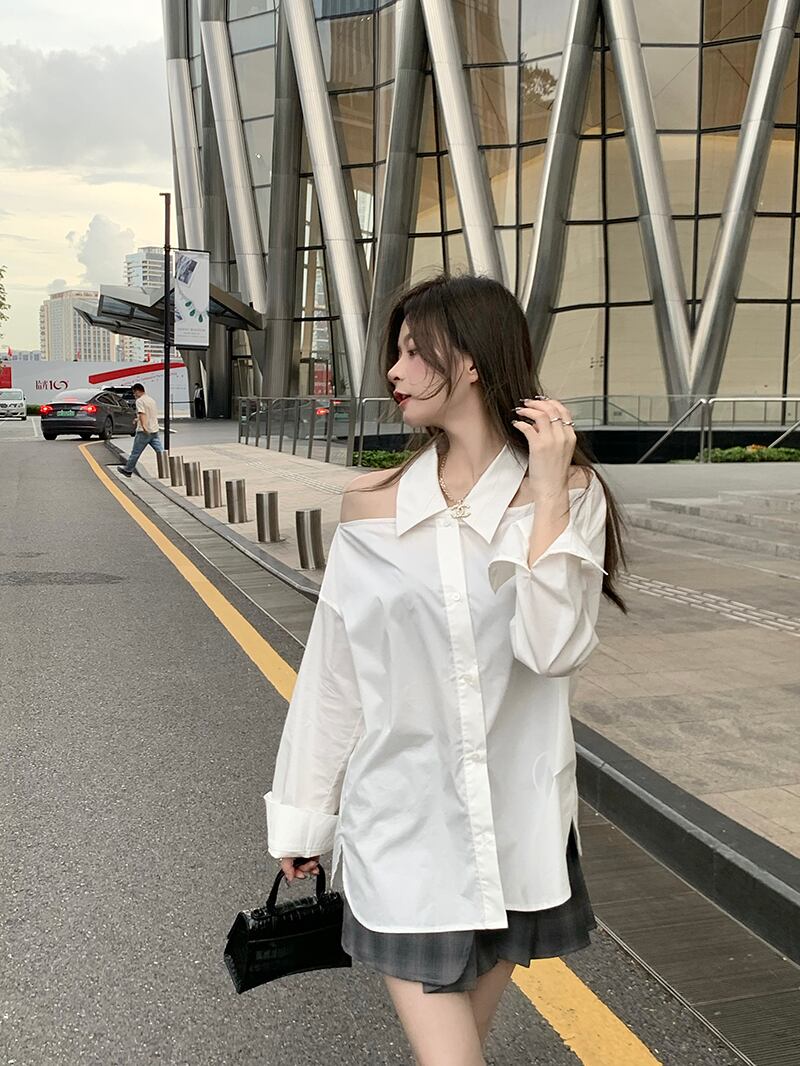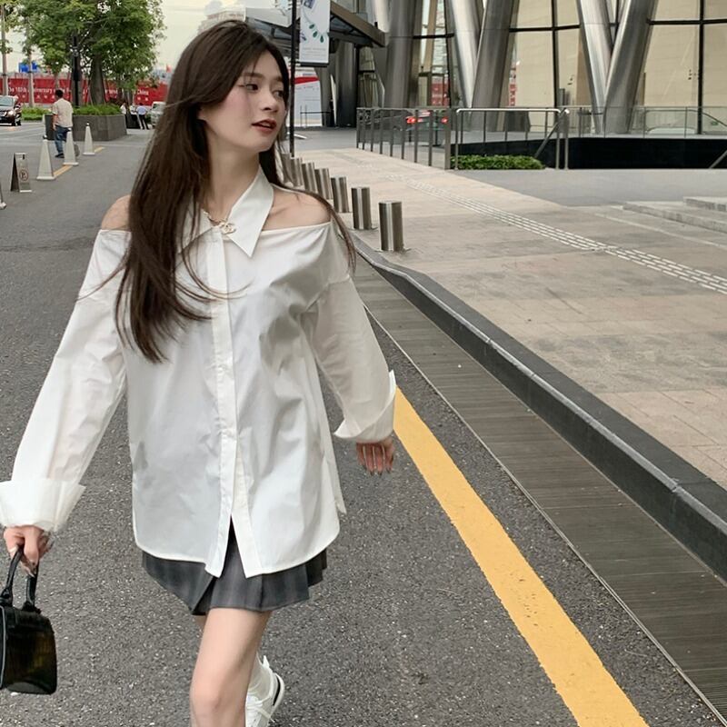 ホワイトカジュアルシャツ オータムルーズストラップレス ロング 秋物 モンロー32562522915
