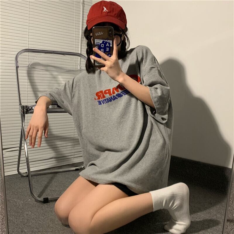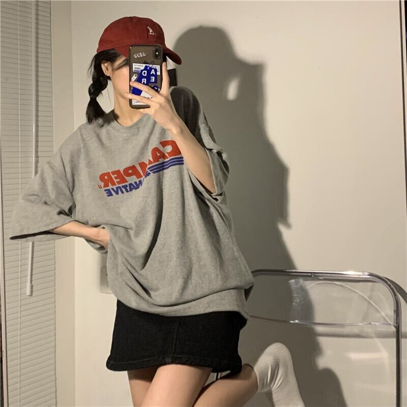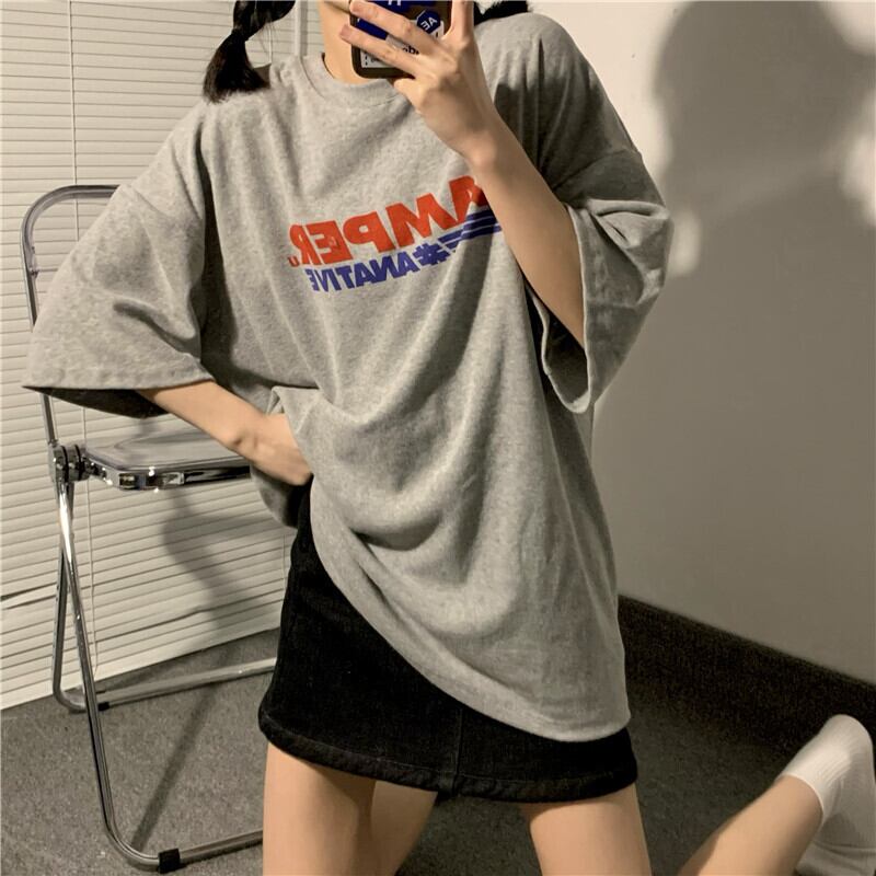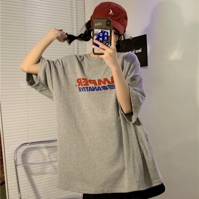 グレーTシャツ ルーズサマートップス 夏物 モンロー90603435547