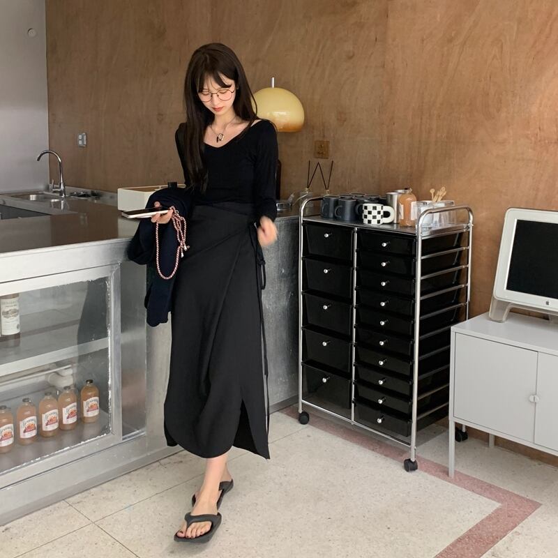 ハイウェストウェストスカート オータムルーズスリットAライン 秋物 モンロー10614456070