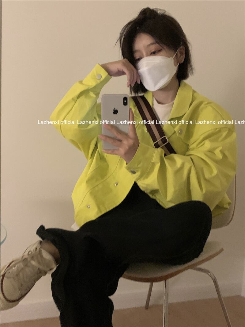 スタイルルーズシャツ オータムカジュアルイエロージャケット ロング 秋物 モンロー9339956674