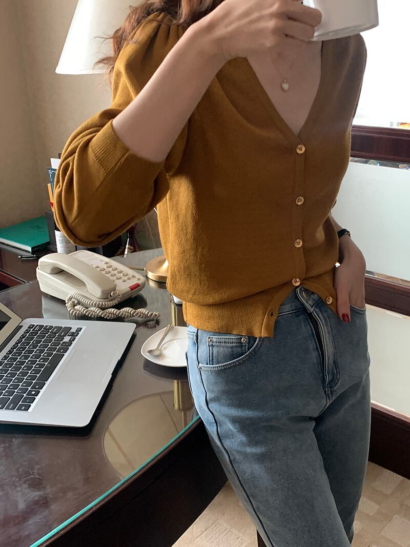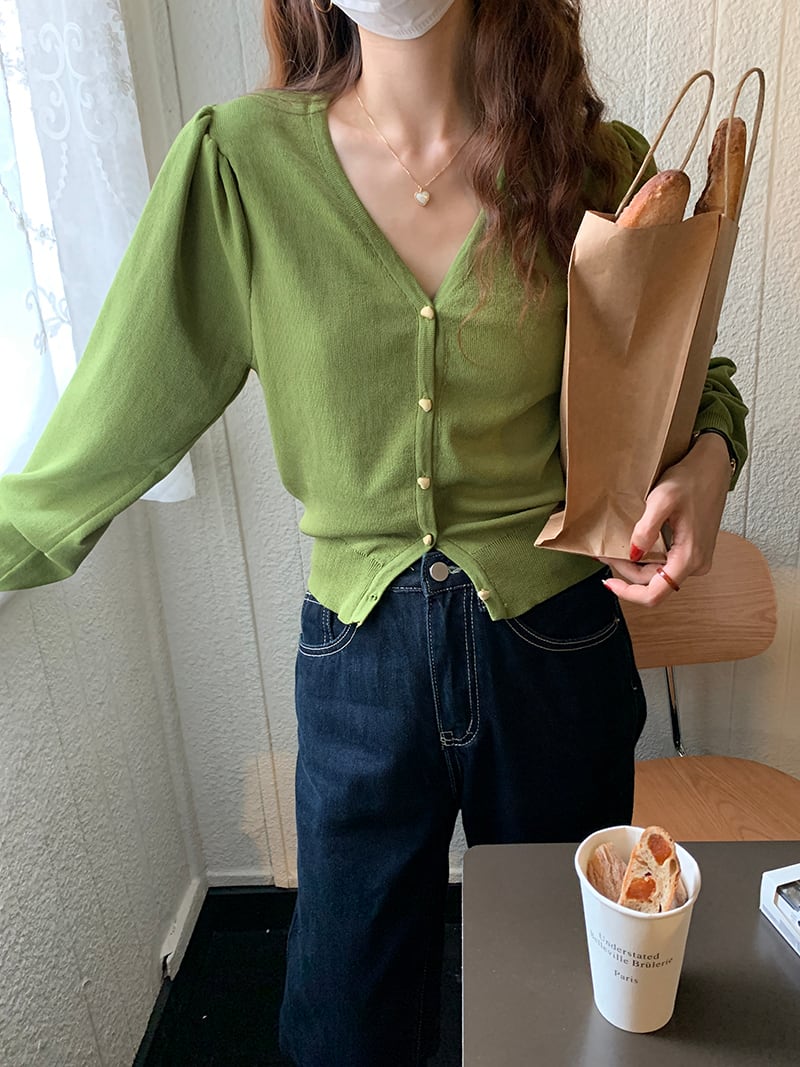 ベーシックグリーンニットカーディガンオータム薄手トップス ロング 秋物 モンロー92453142991