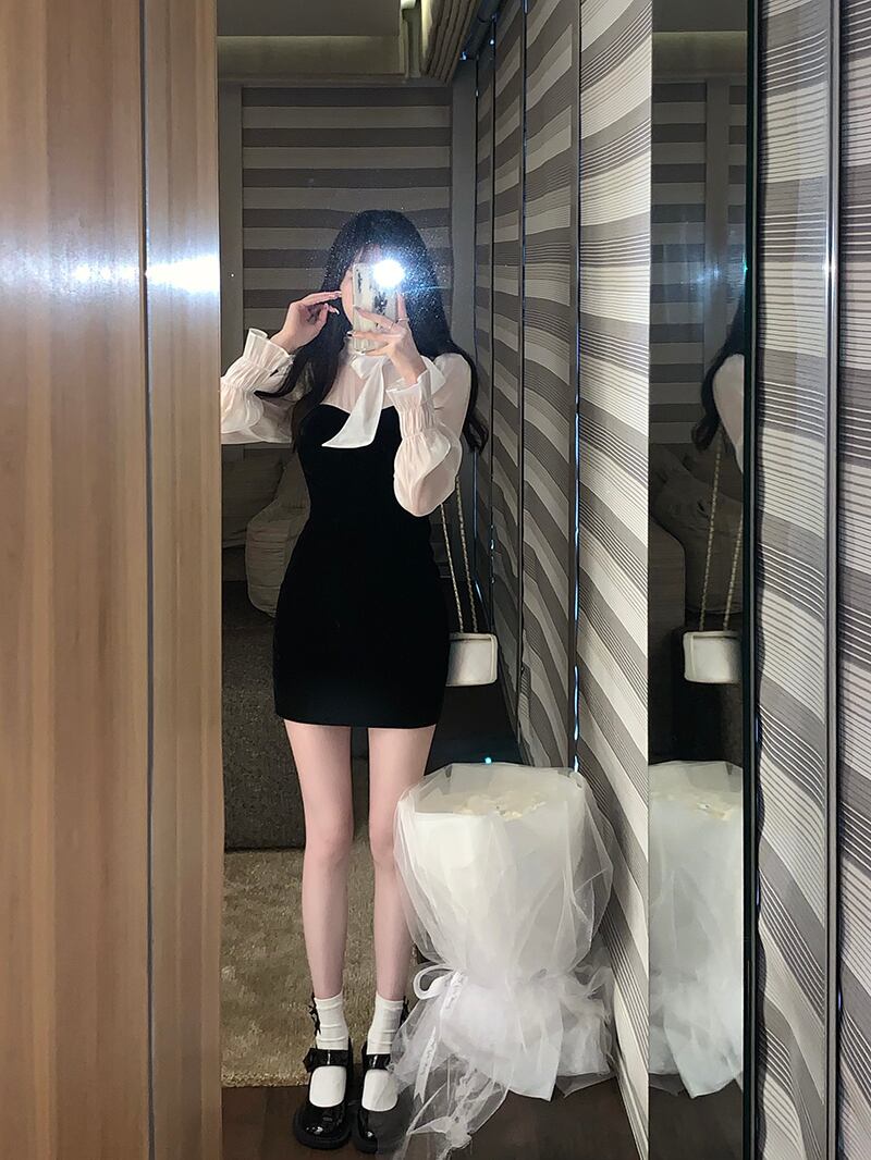 オータムレディースドレス リボンベルベットスカート 大人ガーリー スウィート キュート カジュアル 秋物 ピュア ステッチ モンロー39226753333
