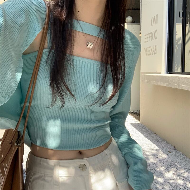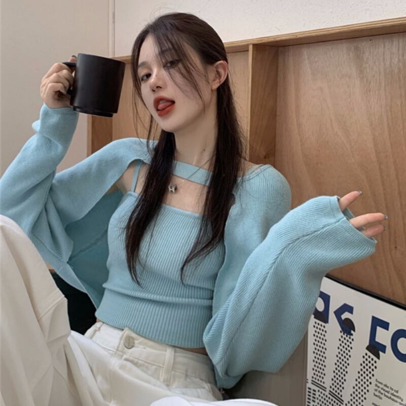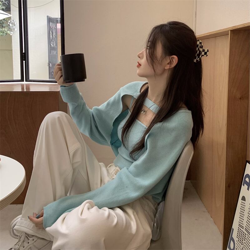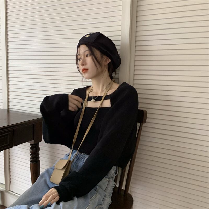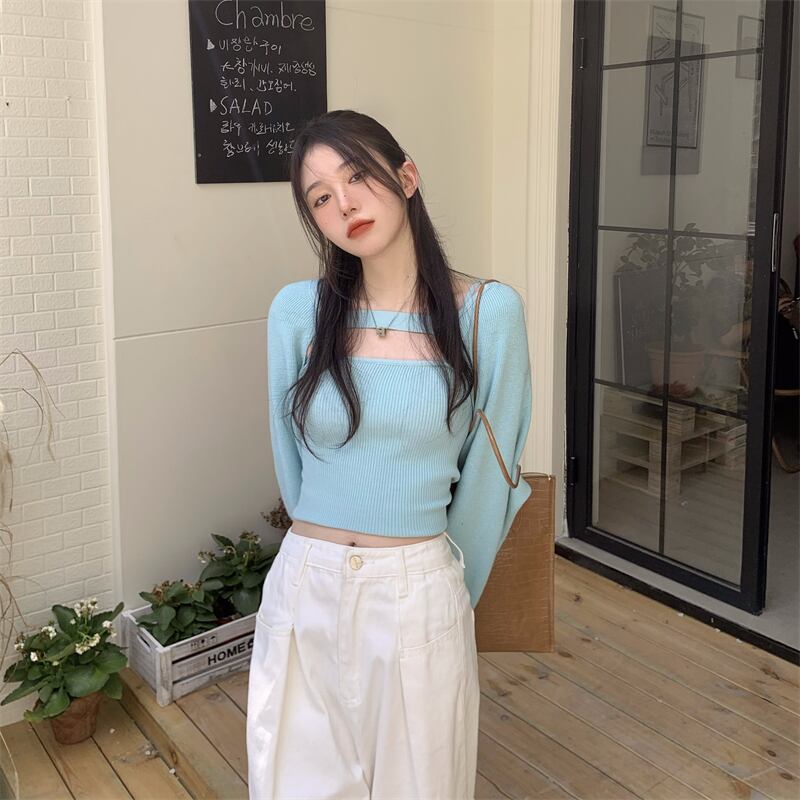 オータムニットトップス ルーズ長袖スリーブブラウス セット ロング 秋物 モンロー113209034