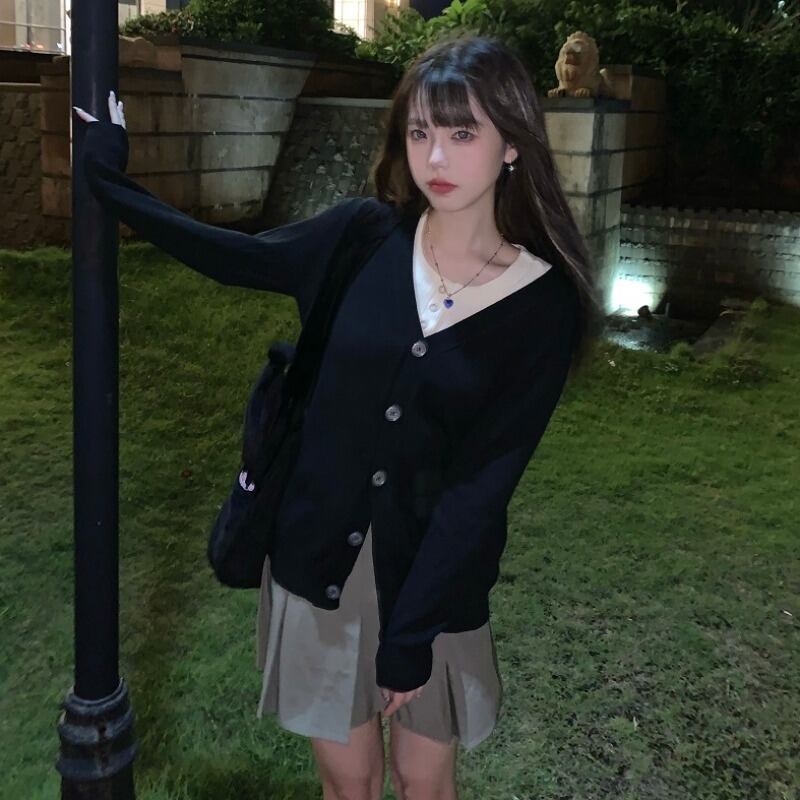 スタイルブラックニットカーディガンオータムジャケット カジュアルルーズ ロング 秋物 モンロー59785525726