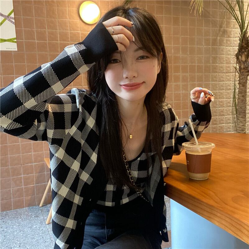 オータムスタンダードVネックカラーニットカーディガン レトロ 秋物 モンロー83786388797