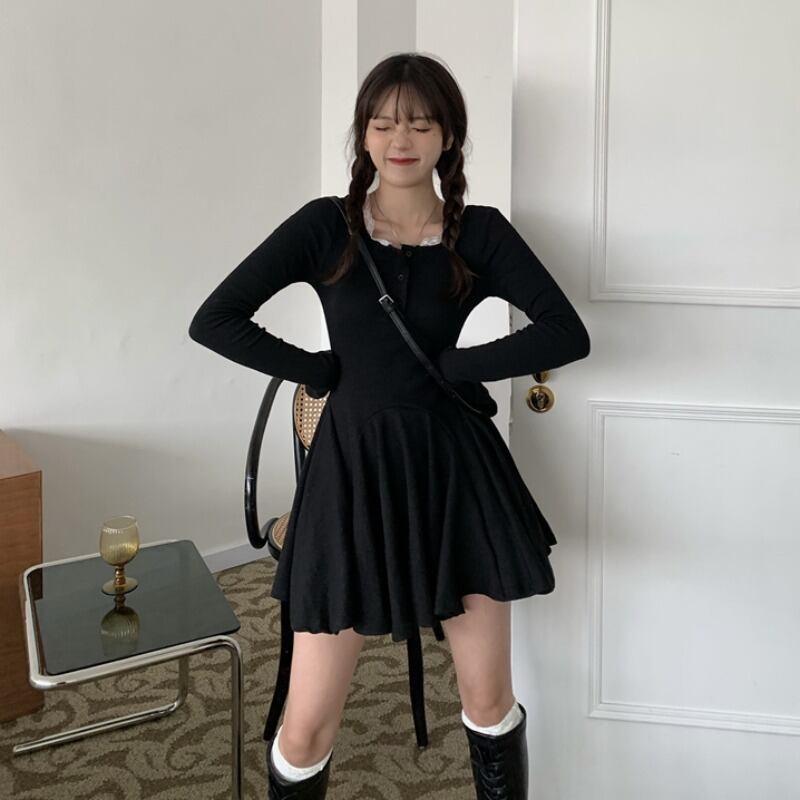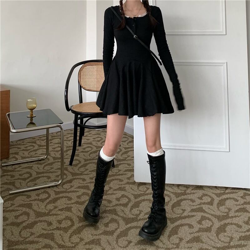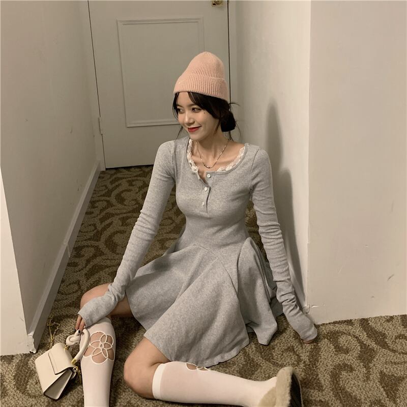 オータムレースVネックウェストドレス 秋物 ピュア ステッチ モンロー3630857050