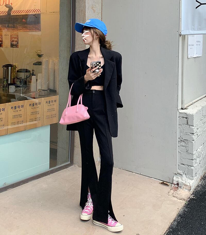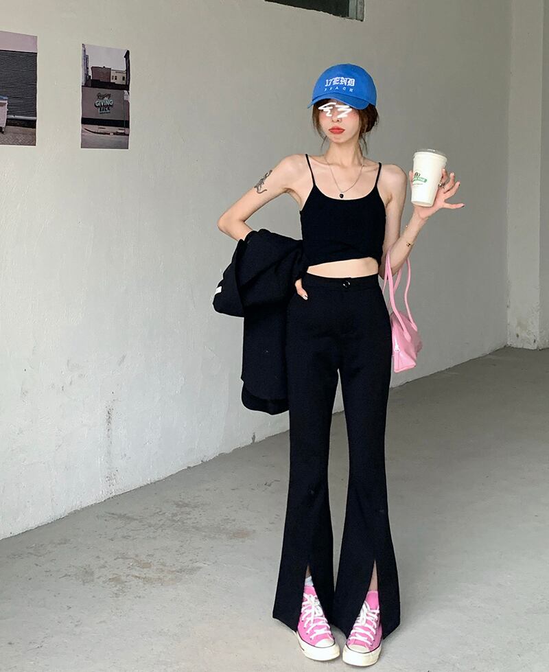 オータムブラックパンツ ストレッチハイウェストウェストカジュアル レッド エラスティック 伸縮 秋物 モンロー54460778714