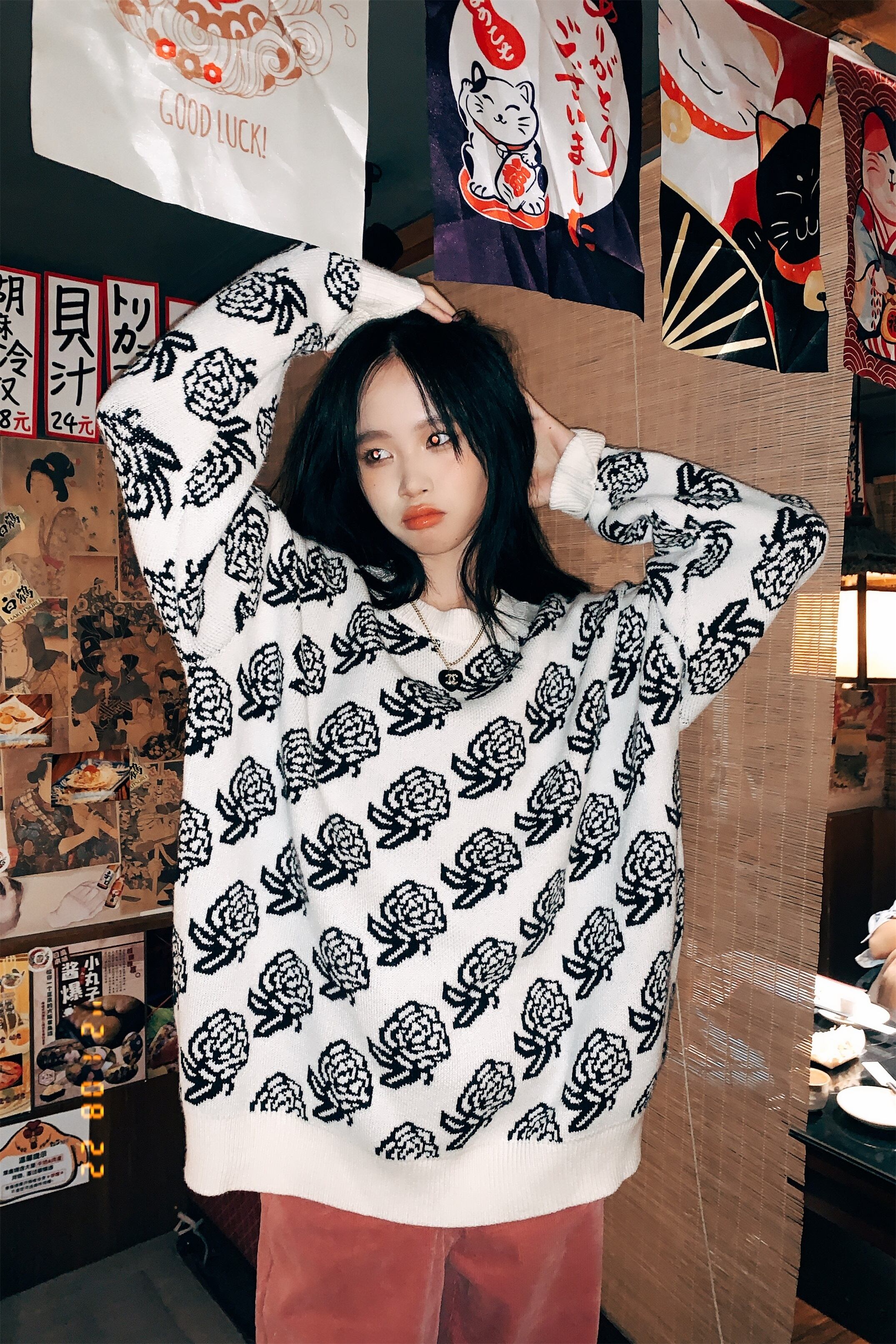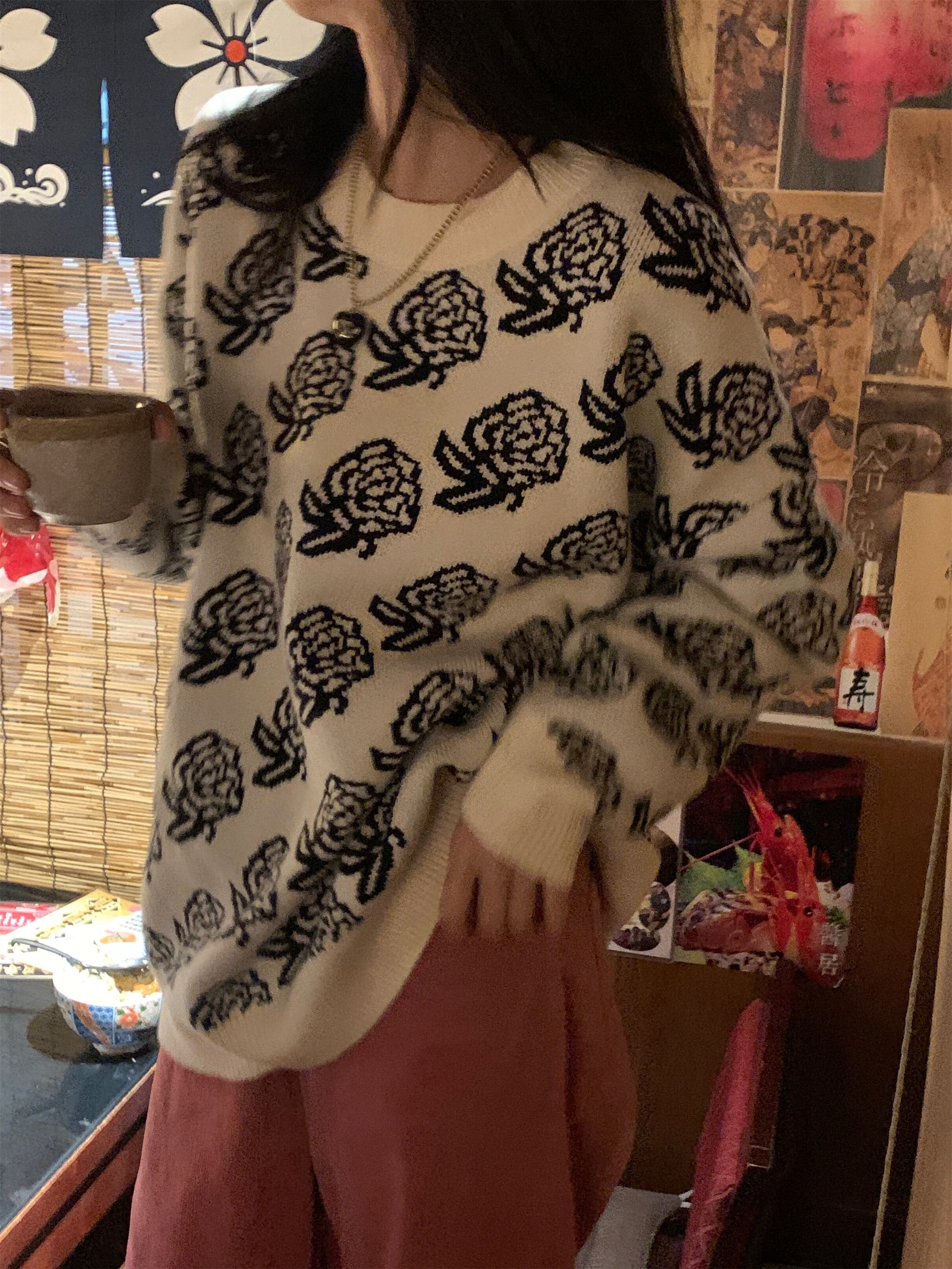 スタンダードルーズセーター オータムジャケット ロング レトロ 秋物 モンロー38850162712