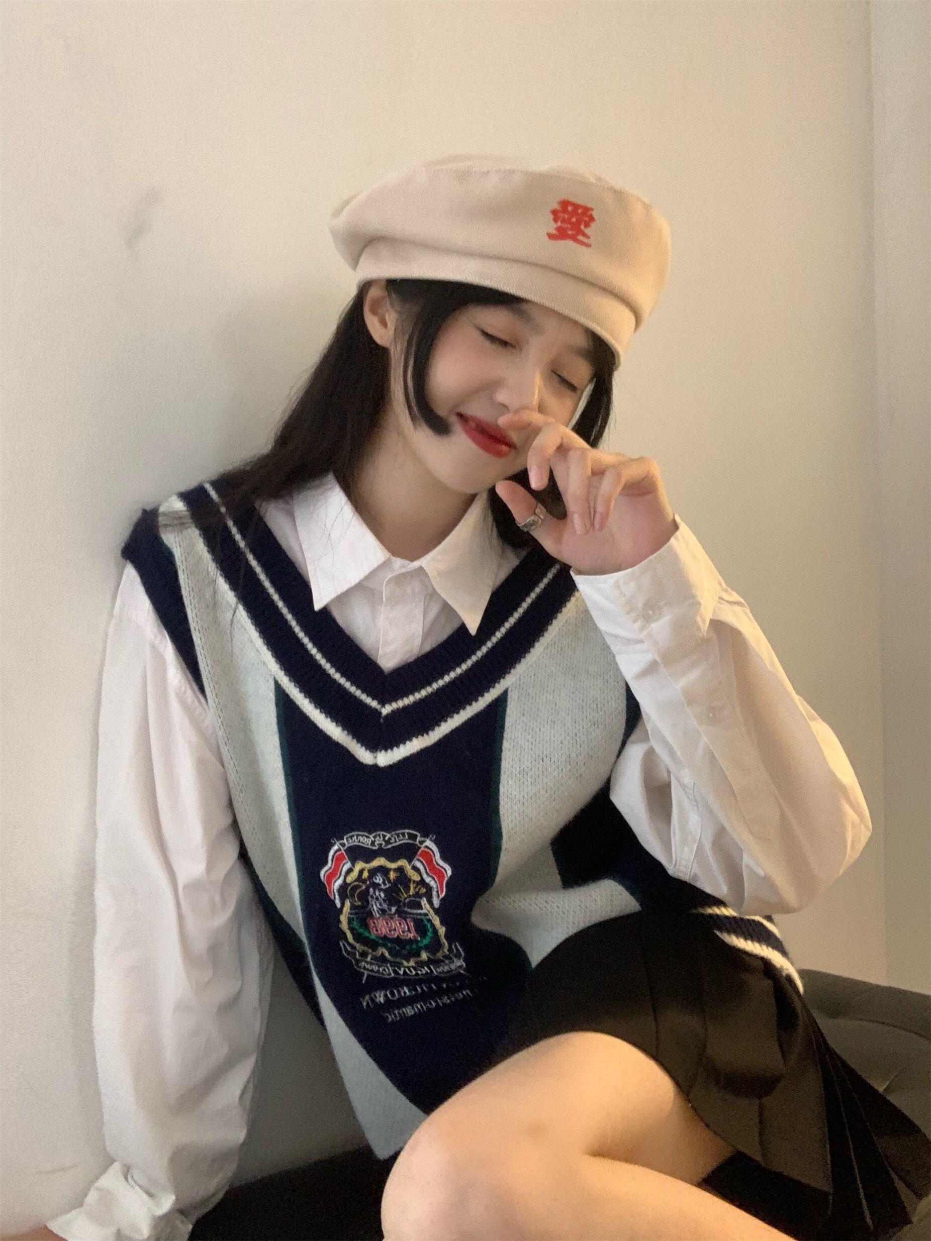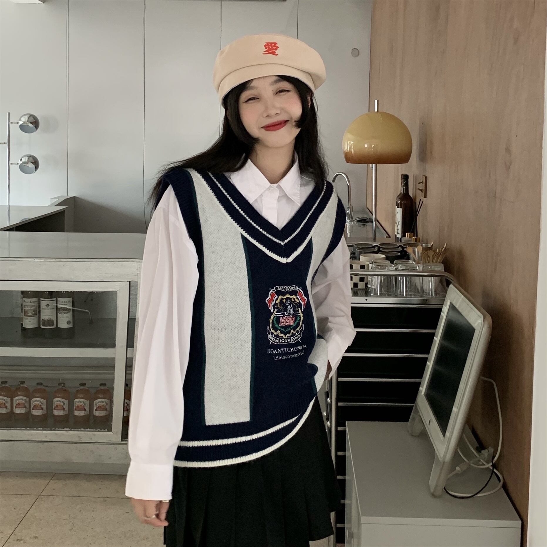 スタイルルーズオータムVネックニットトップス 秋物 モンロー57314054719
