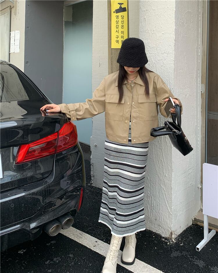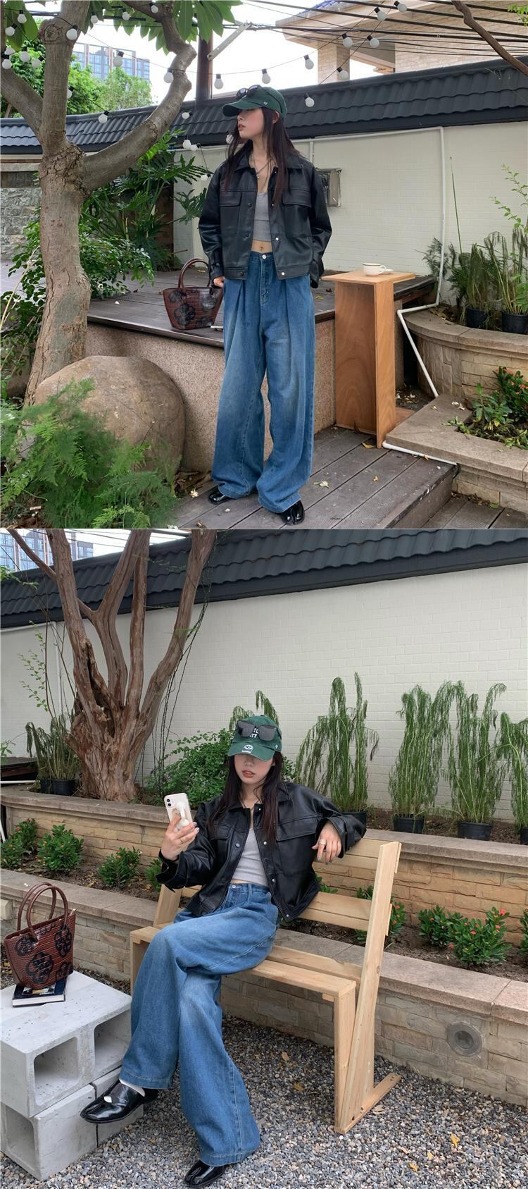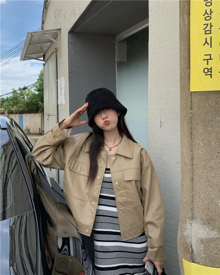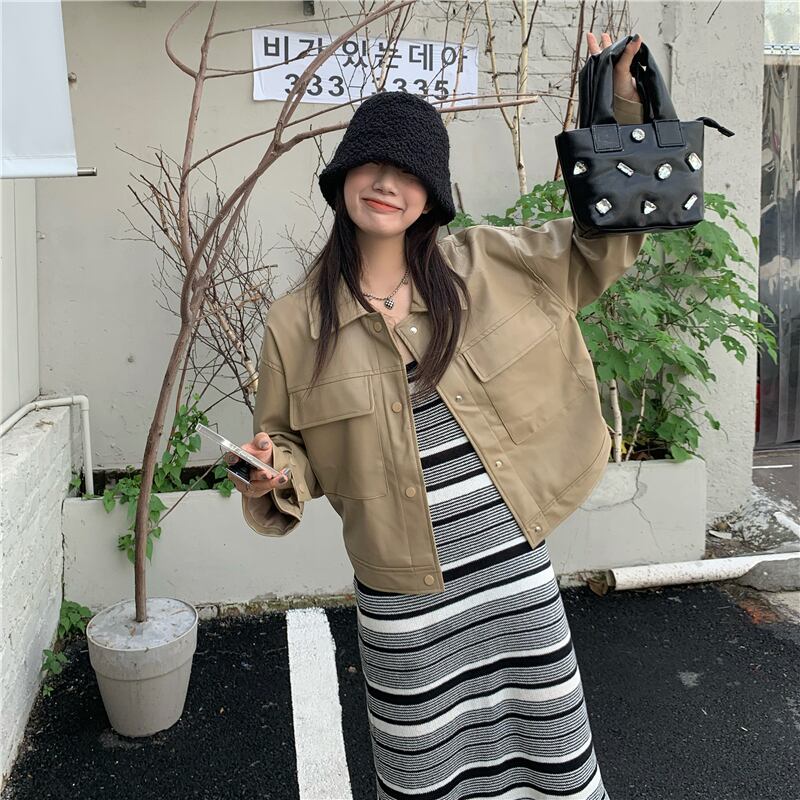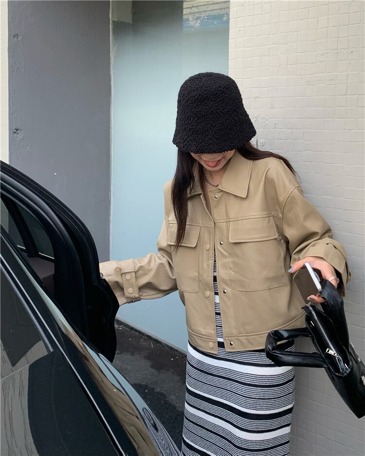 ブラックルーズ長袖スリーブレザージャケット オータムカラートップス ロング 秋物 モンロー86087236079