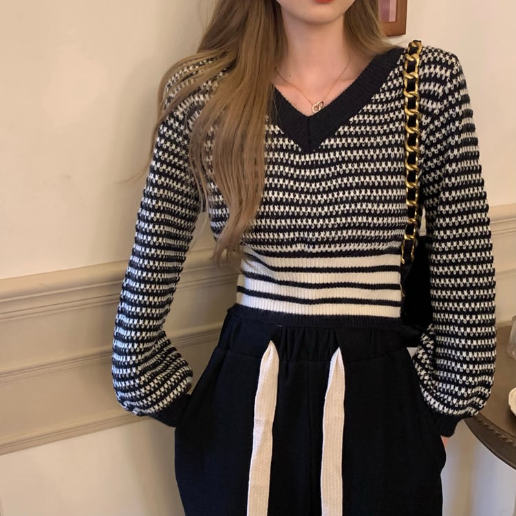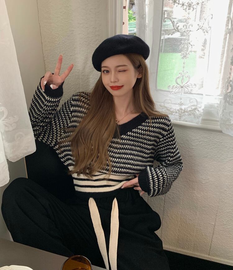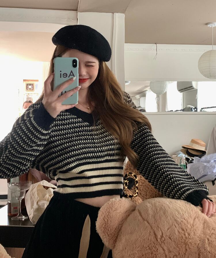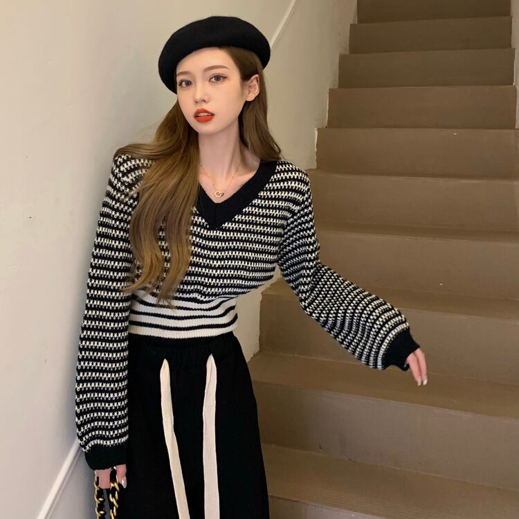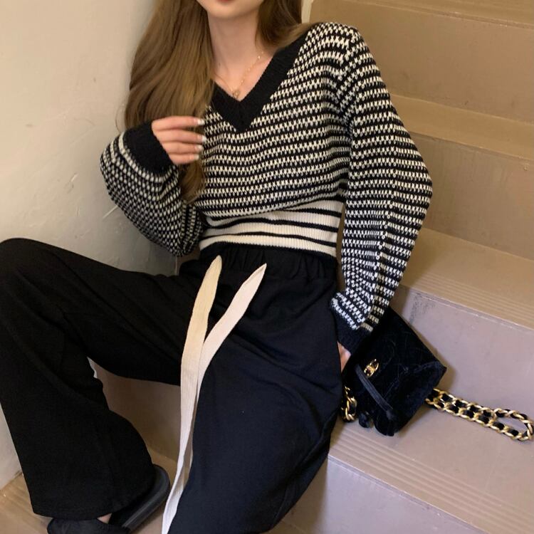 スタイルVネックルーズプルオーバー セーター オータムスタンダードトップス コート ロング レトロ 秋物 モンロー42107123567
