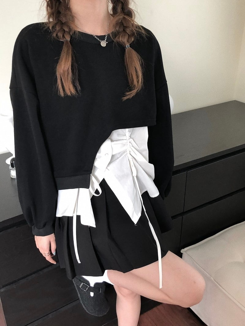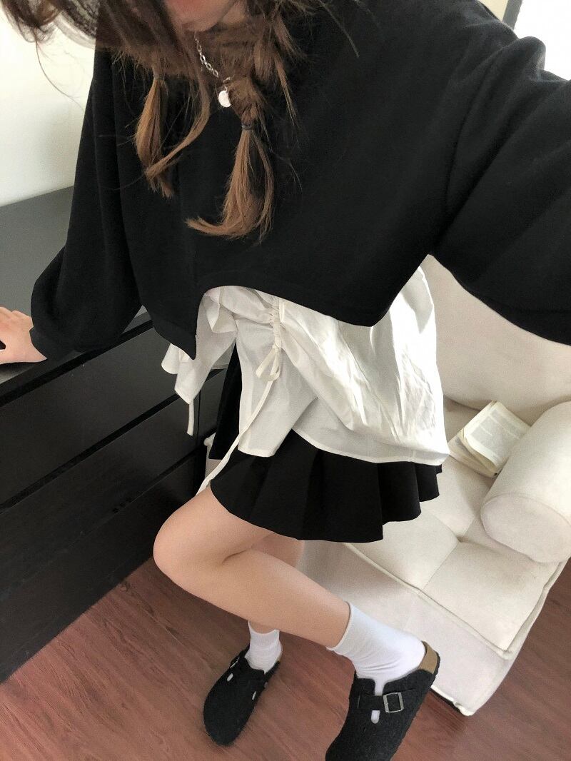 オータムノースリーブシャツ ブラックセーター ウェストスカート セット 秋物 モンロー579598130