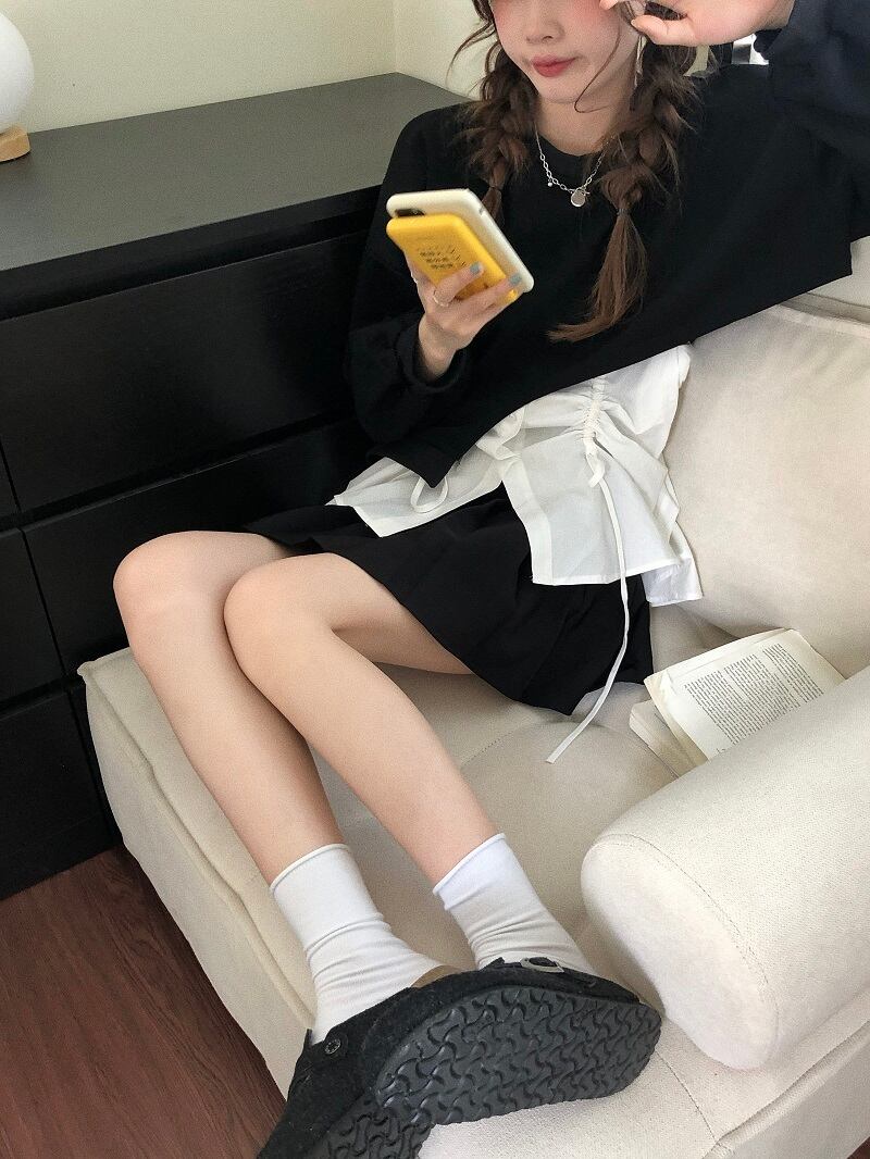 色:シャツセーター,黒の短いスカートS,黒の短いスカートM,黒スカートL