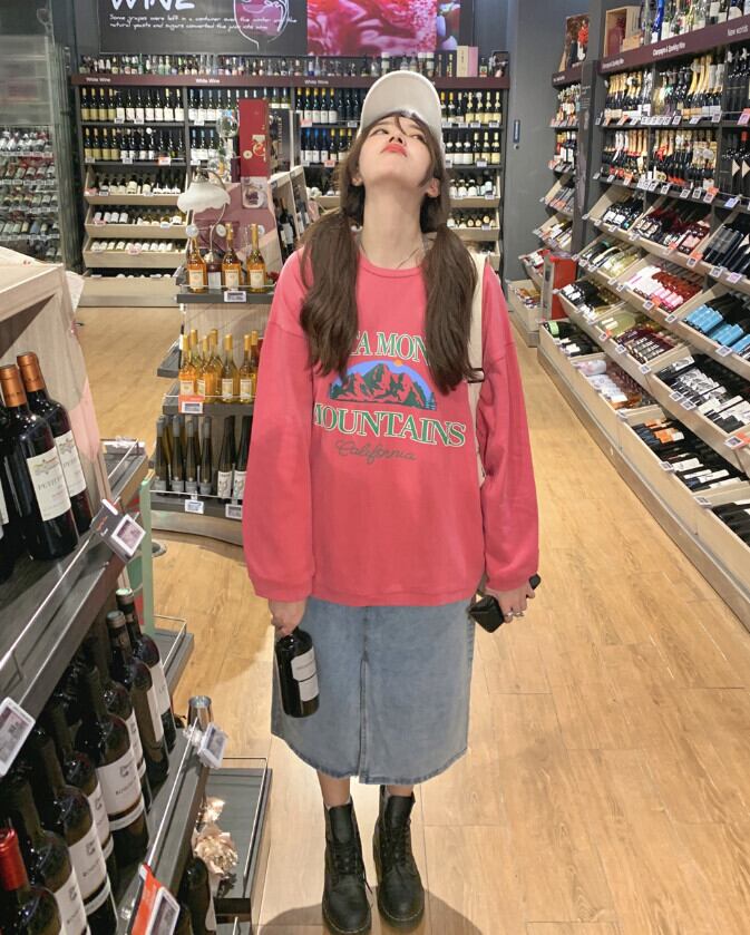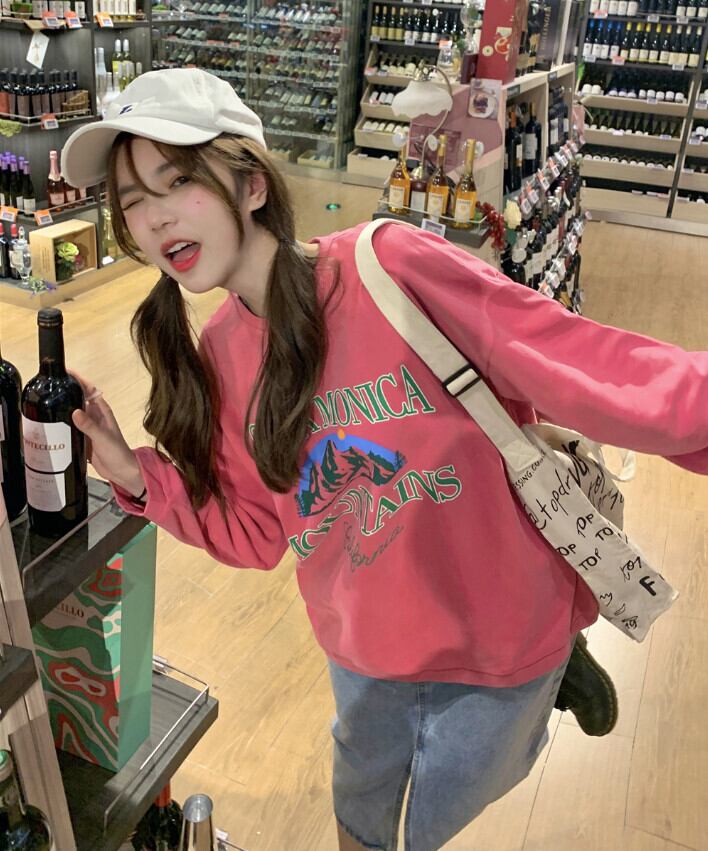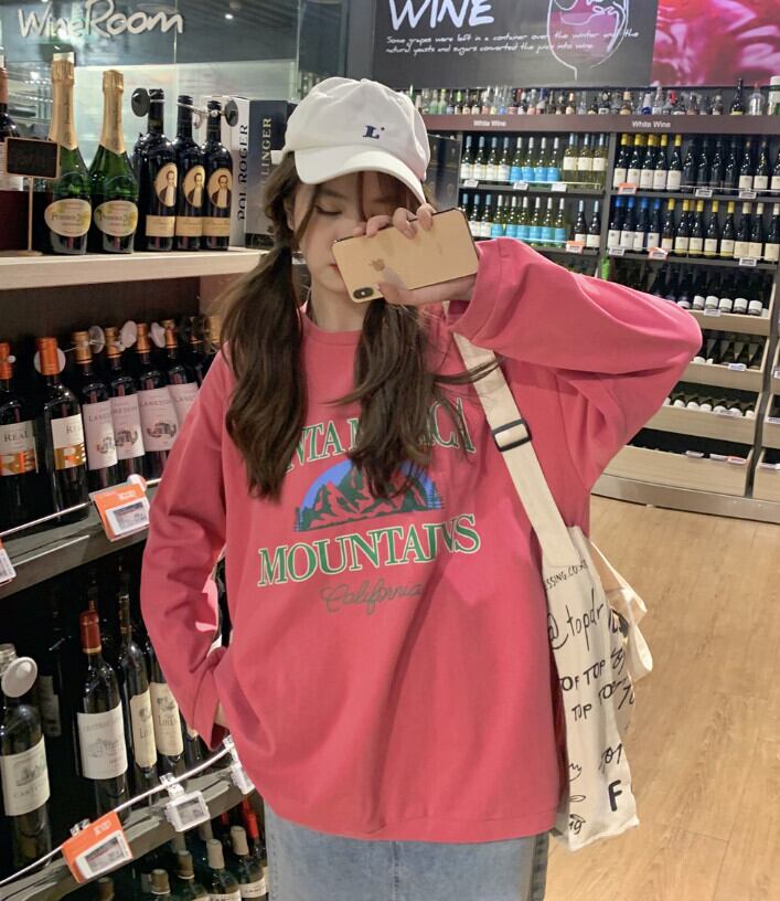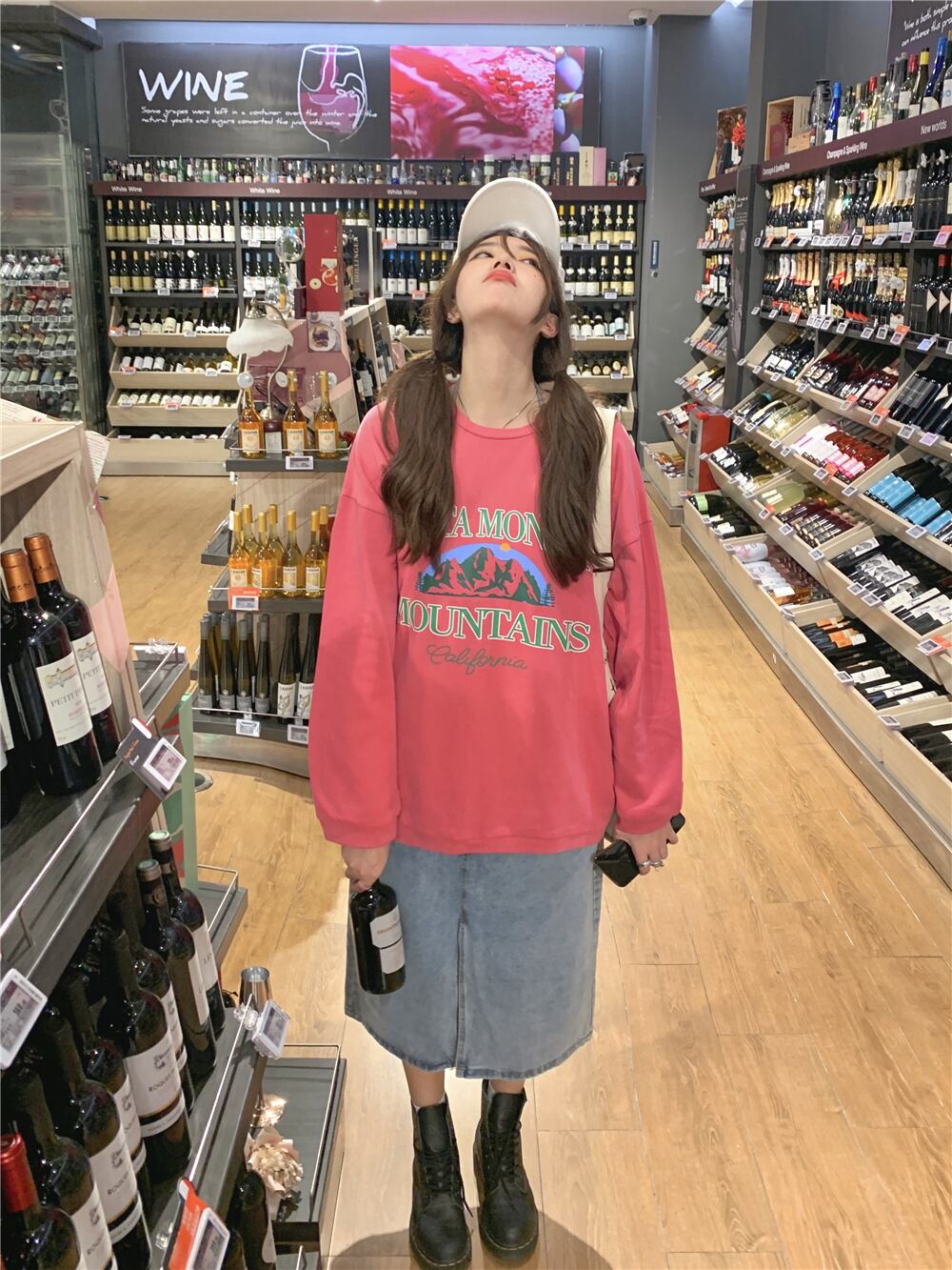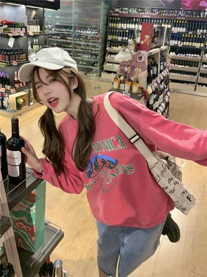 スタイルルーズセーター オータムパウダー薄手プリントトップス ロング 秋物 モンロー70207942225