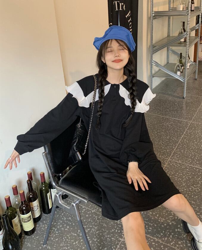 ルーズカラードレス オータムブラック 秋物 モンロー46083702601