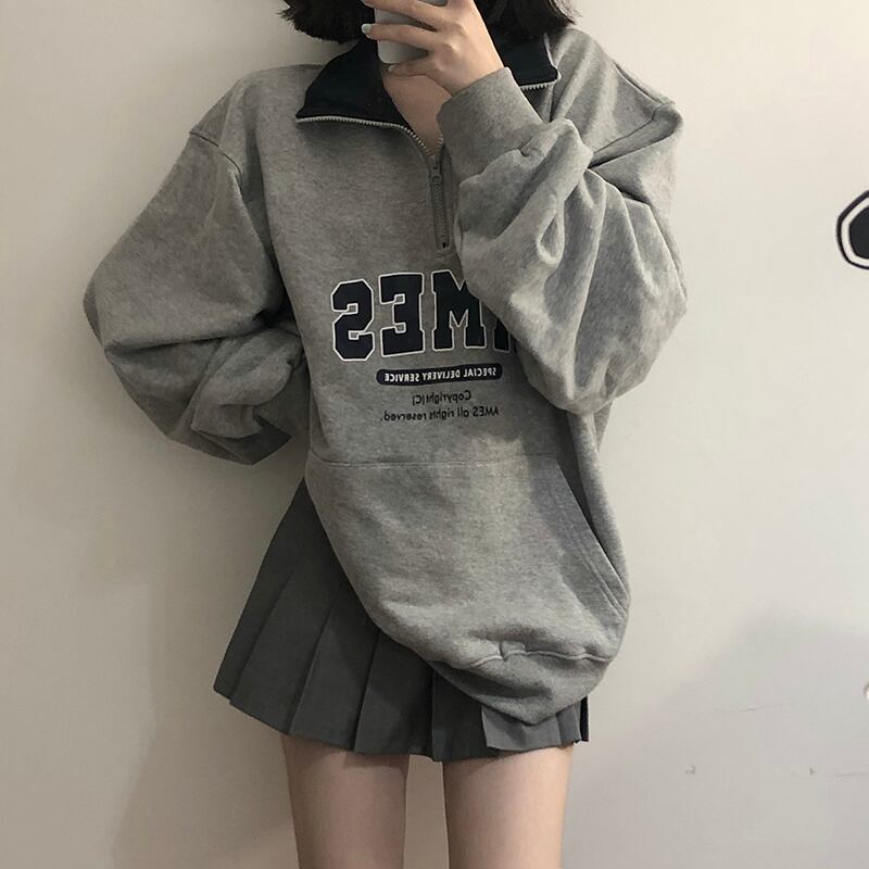 スタイルルーズセーター ジャケット オータムプリントジッパートップス ロング 秋物 モンロー27730715483
