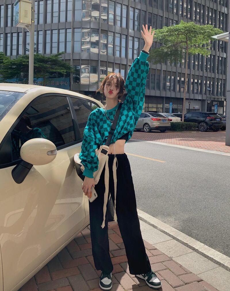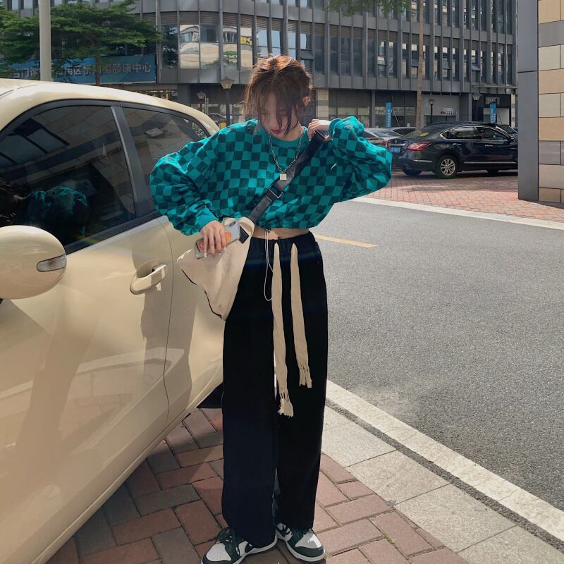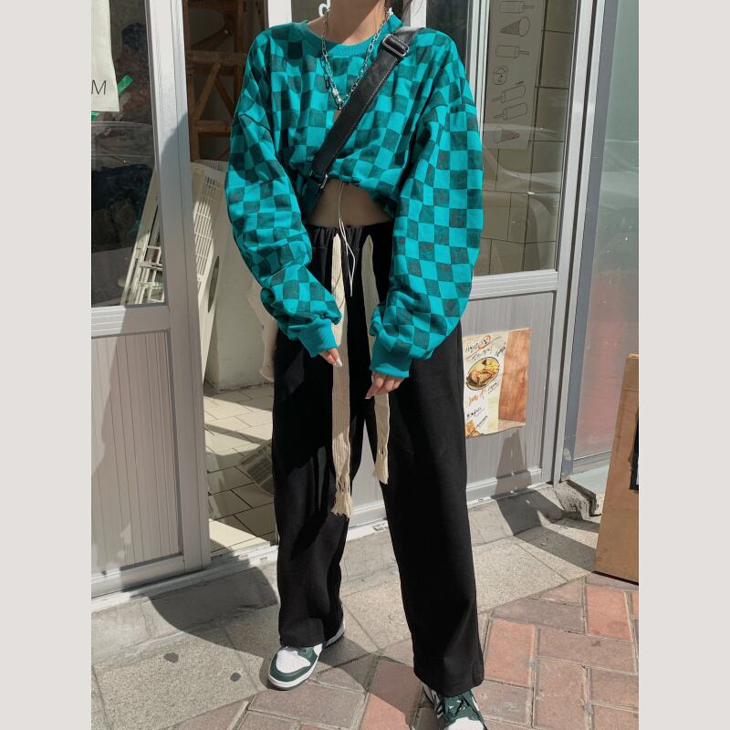 色:チェック柄トップ,ズボン