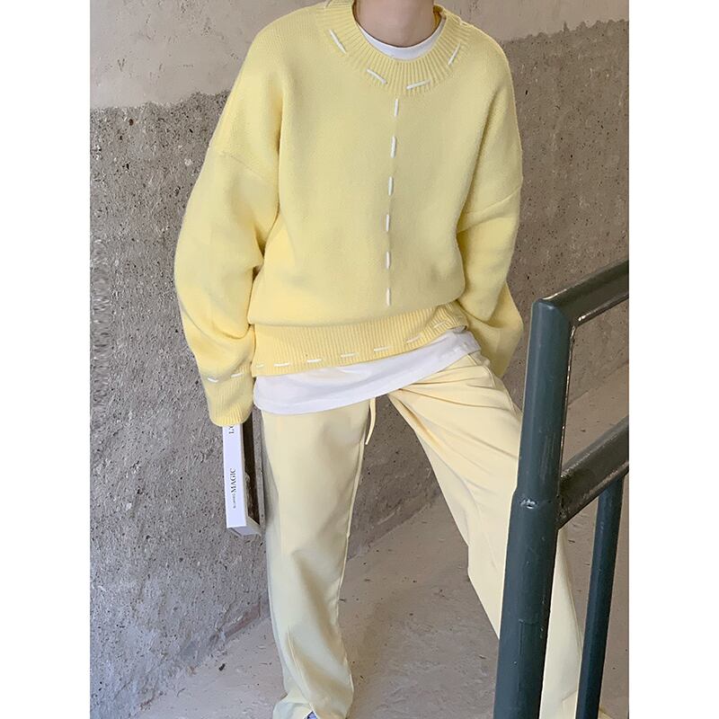 色:ドローストリングパンツイエロー,黄色い糸のセーター