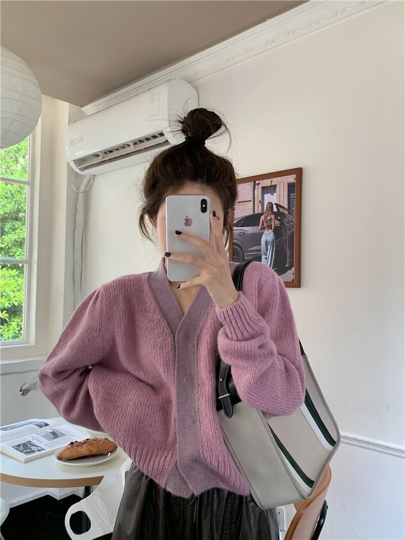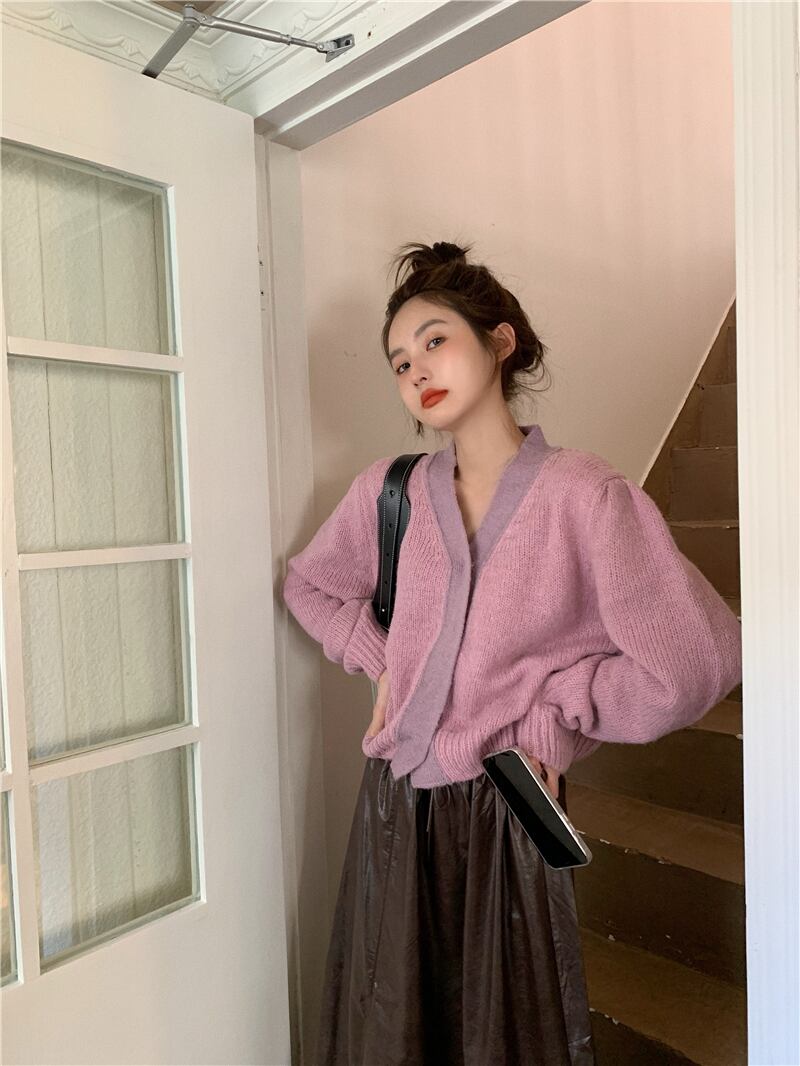 ルーズVネックカーディガンセーター オータムトップス ジャケット ロング ピンク 大人ガーリー スウィート キュート カジュアル 秋物 モンロー25814389309