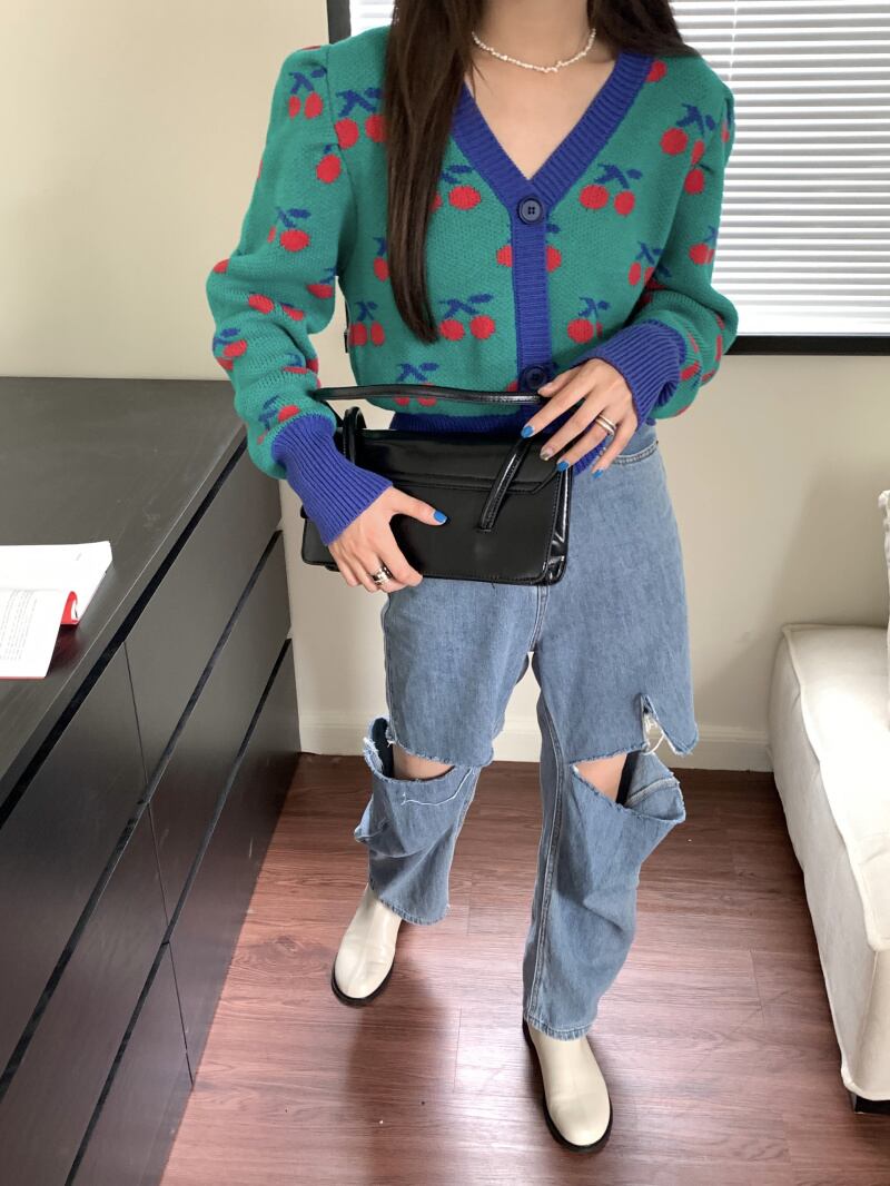 スタンダードフローラルニットカーディガンオータムスタイルシャツ ロング レトロ 大人ガーリー スウィート キュート カジュアル 秋物 花柄 モンロー93435454688