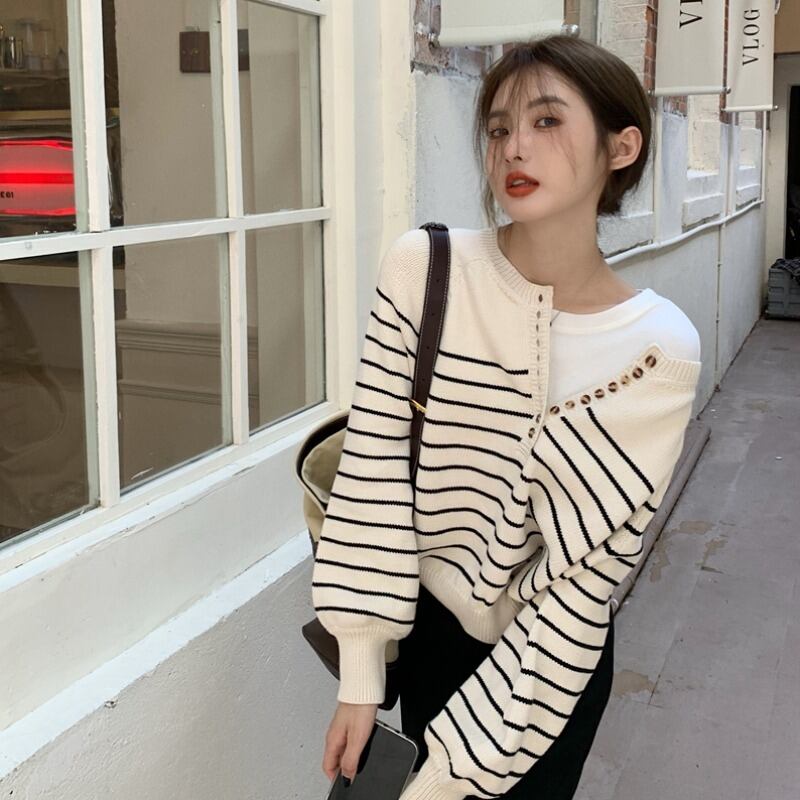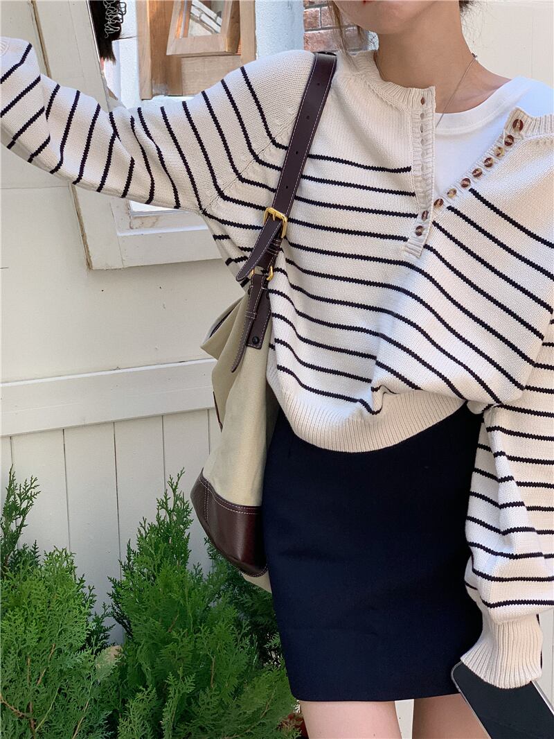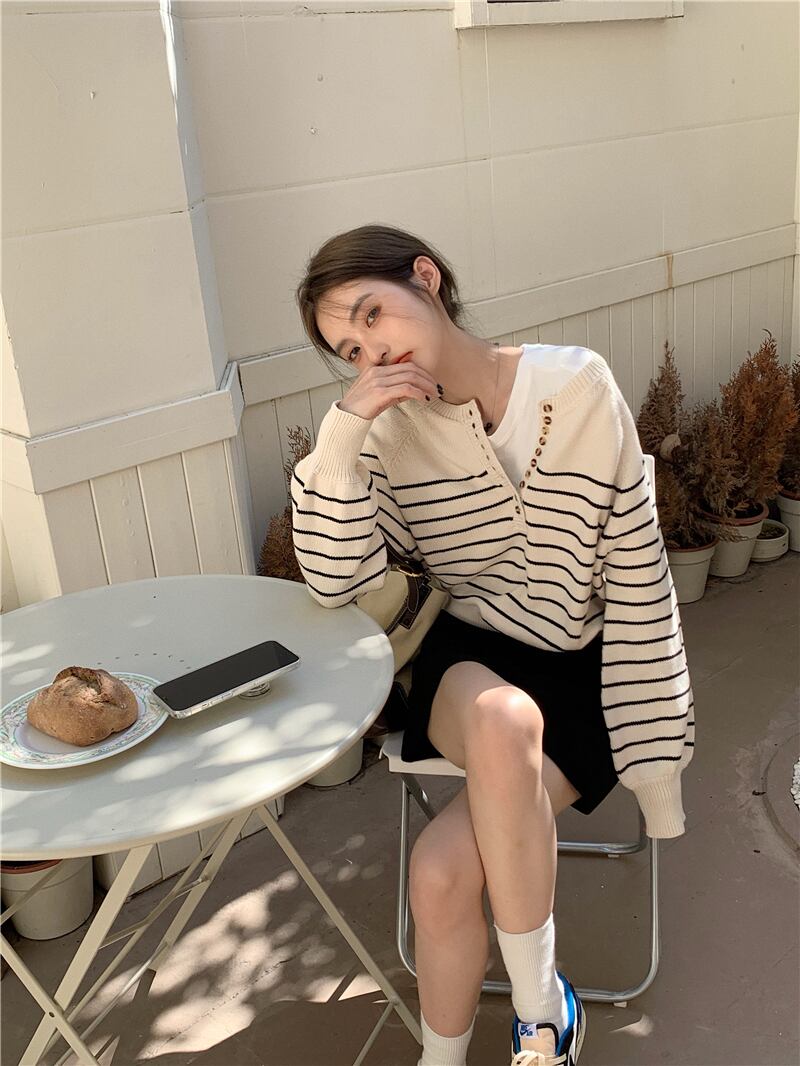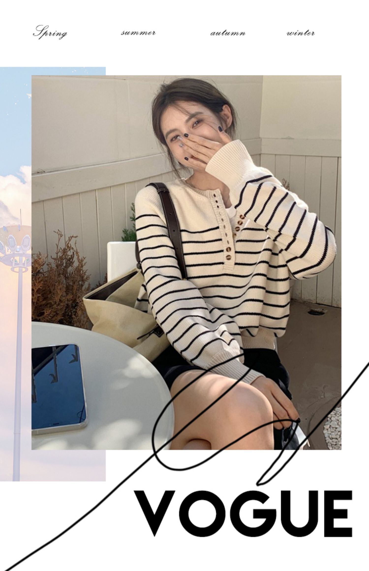 スタイルストライプセーター レディーススプリングオータム薄手ショートルーズコート トップス 春物 秋物 モンロー56212480843